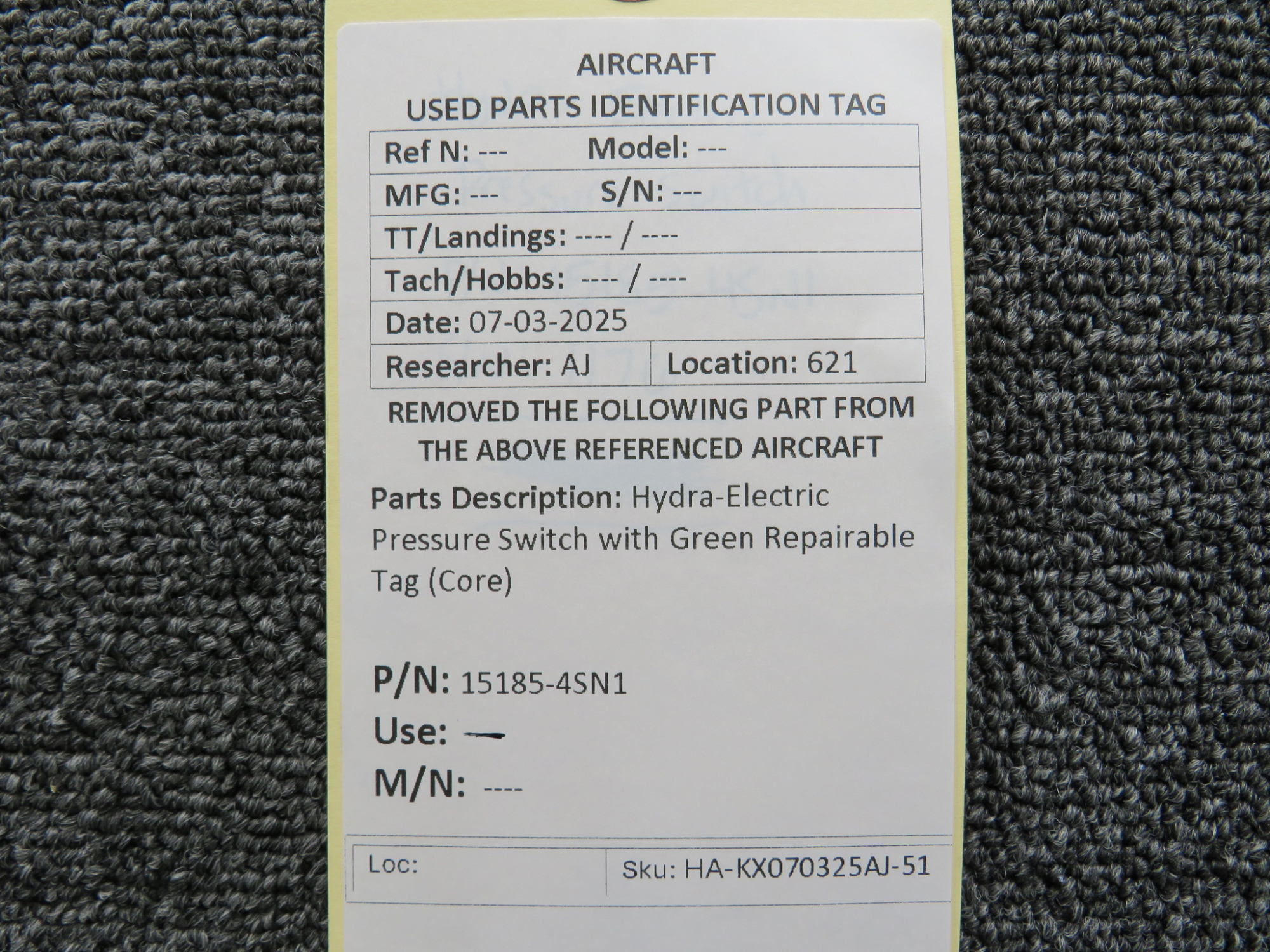 - Includes green repair tag
