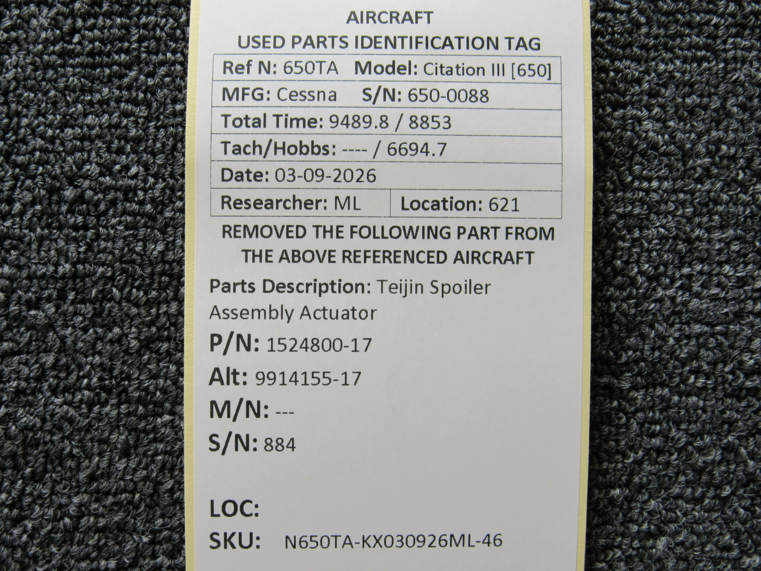 Every part is carefully inspected throughout our process and several times before it goes online. Most items are sold as-removed, just as they came off the aircraft. These parts are not functionally tested. What we do provide is clear photos, full traceability when available, pricing that reflects the as-removed condition, and a no-nonsense 90-day return window.