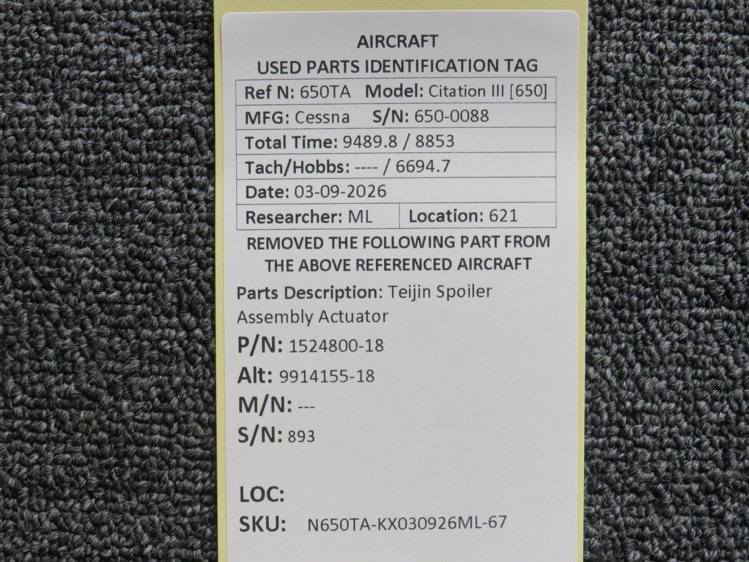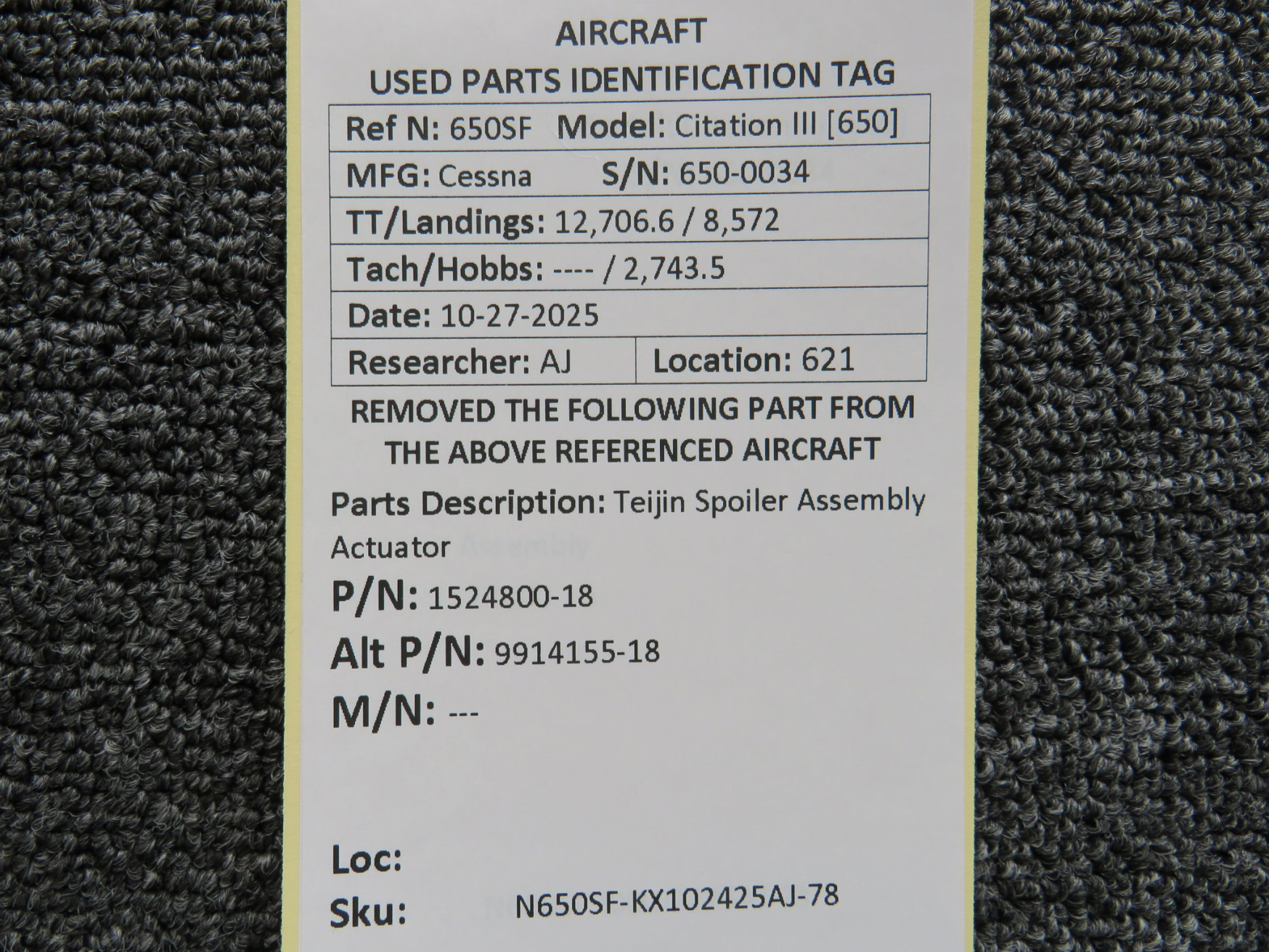 Every part is carefully inspected throughout our process and several times before it goes online. Most items are sold as-removed, just as they came off the aircraft. These parts are not functionally tested. What we do provide is clear photos, full traceability when available, pricing that reflects the as-removed condition, and a no-nonsense 90-day return window.