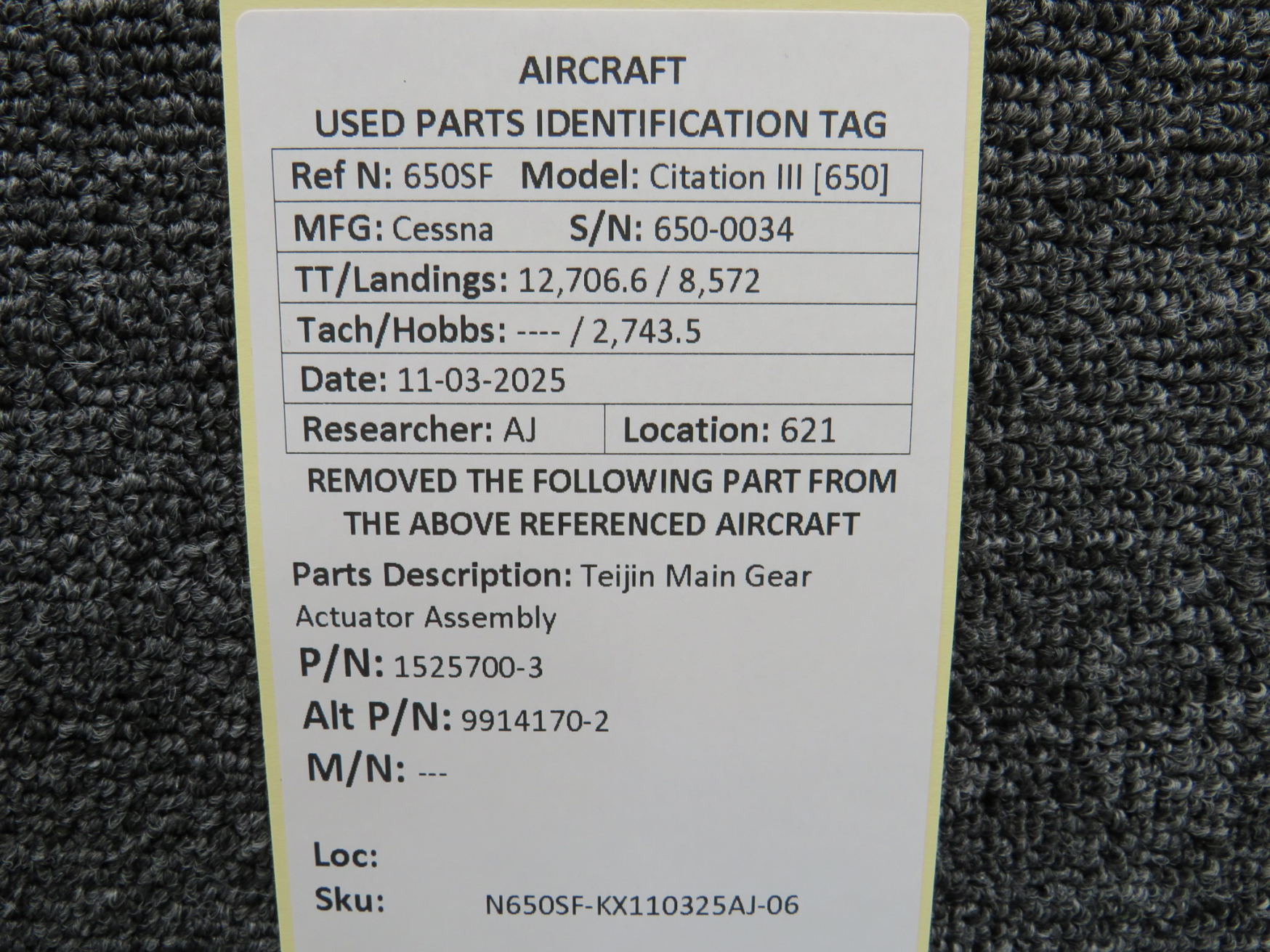 Unless specifically noted, most of our used airplane parts are sold in the condition they were removed, which means you should expect the usual signs of wear and tear.