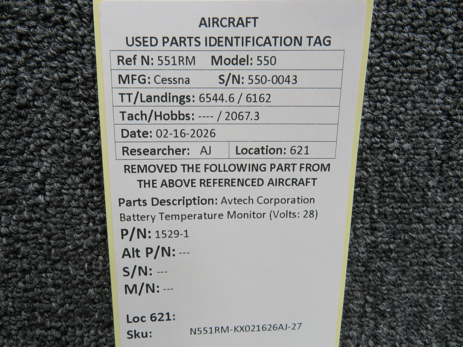 Unless specifically noted, most of our used airplane parts are sold in the condition they were removed, which means you should expect the usual signs of wear and tear.