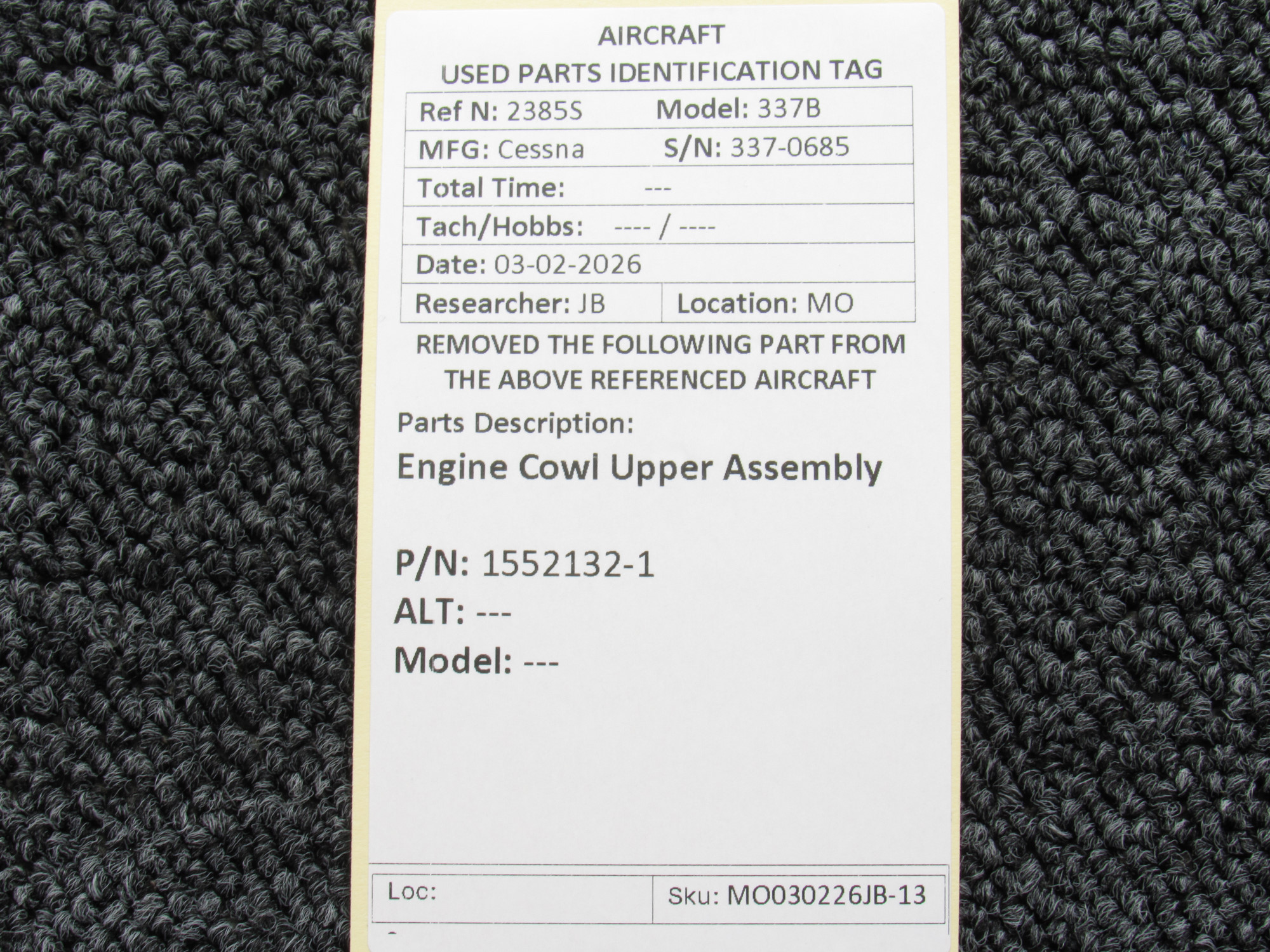 Every part is carefully inspected throughout our process and several times before it goes online. Most items are sold as-removed, just as they came off the aircraft. These parts are not functionally tested. What we do provide is clear photos, full traceability when available, pricing that reflects the as-removed condition, and a no-nonsense 90-day return window.