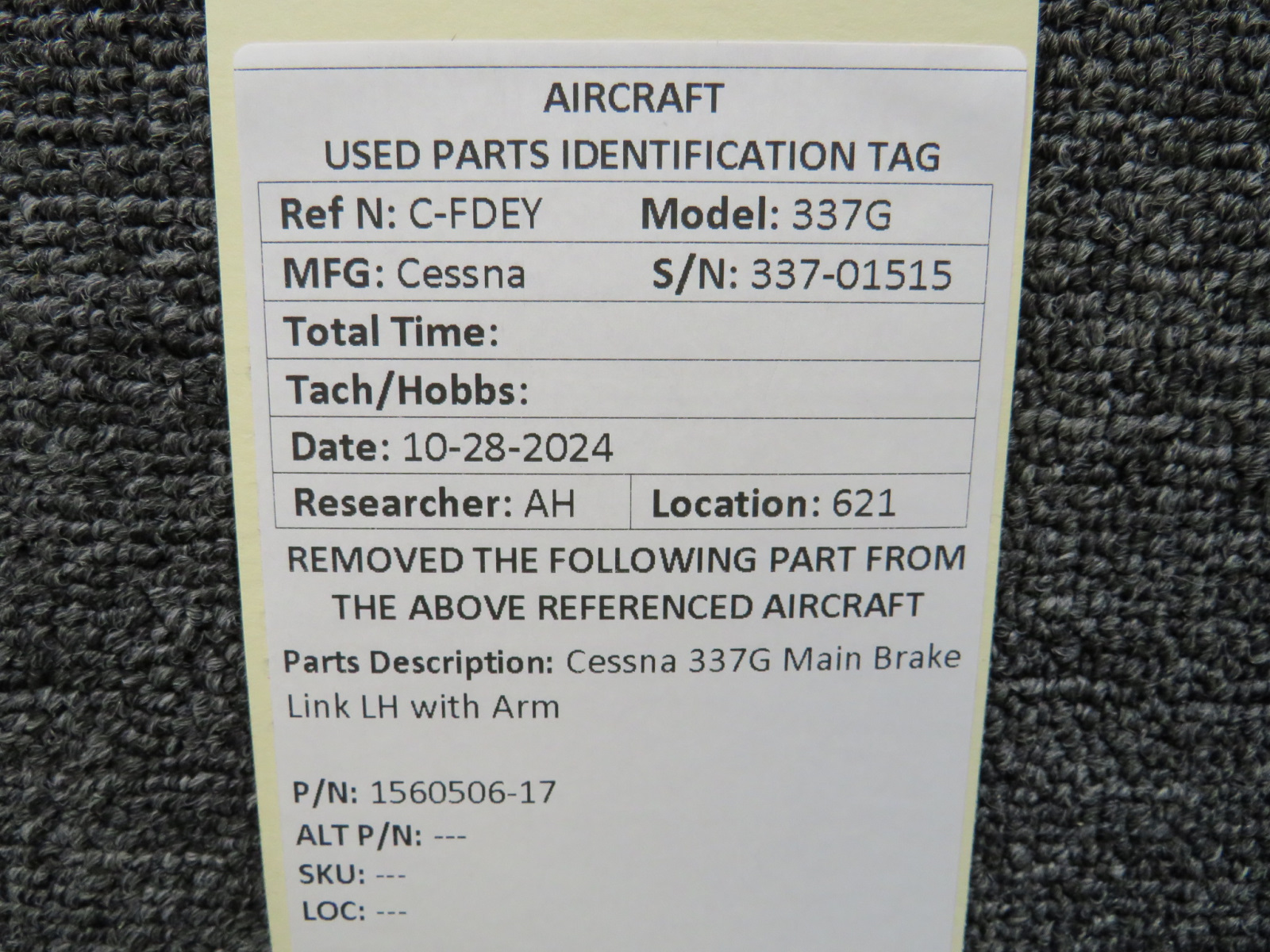 Attention International Buyers: We routinely export aircraft parts to destinations around the world. All import duties, taxes, and any other charges related to importing parts to your country are not included in the price of the item or shipping charges, these are 100% the responsibility of the buyer. Please check with your country's customs office to help determine what these additional costs will be prior to purchasing. We do not mark merchandise value below purchase value nor mark items as "gifts" as both U.S. and international law strictly prohibits this. We do not ship to forwarding shipping stations. A business or residential address is required for delivery.