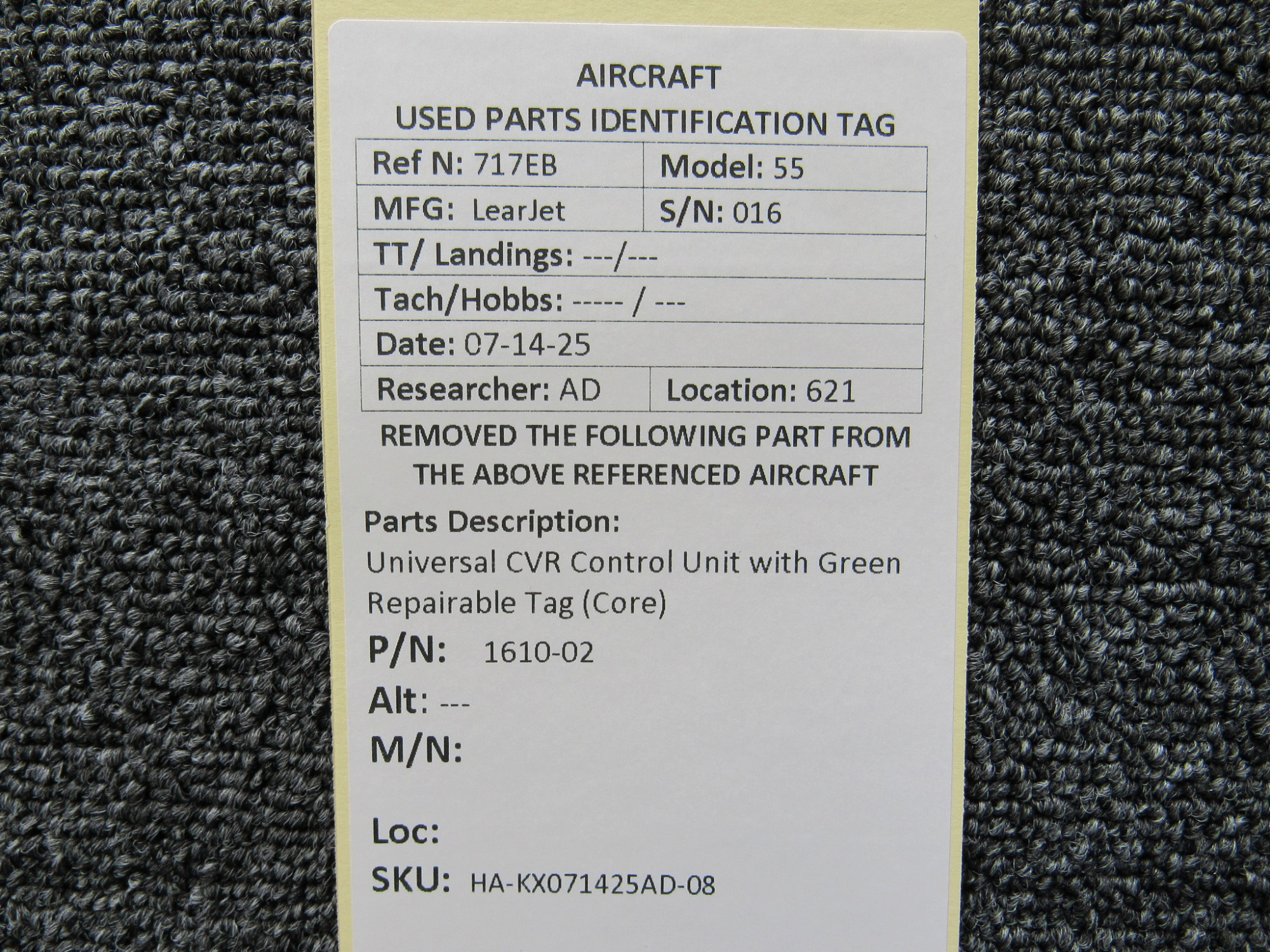 Every part is carefully inspected throughout our process and several times before it goes online. Most items are sold as-removed, just as they came off the aircraft. These parts are not functionally tested. What we do provide is clear photos, full traceability when available, pricing that reflects the as-removed condition, and a no-nonsense 90-day return window.