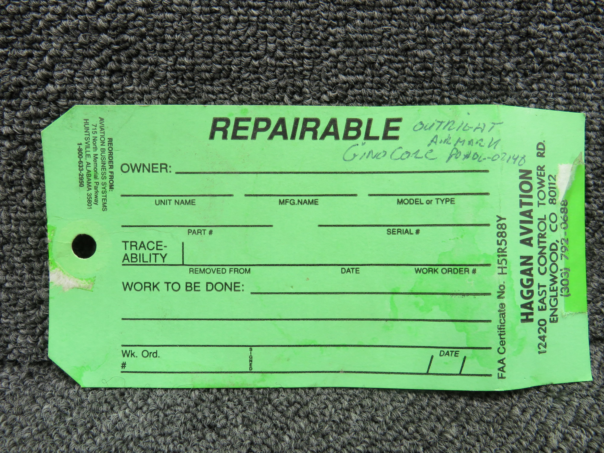- Includes blank green repair tag