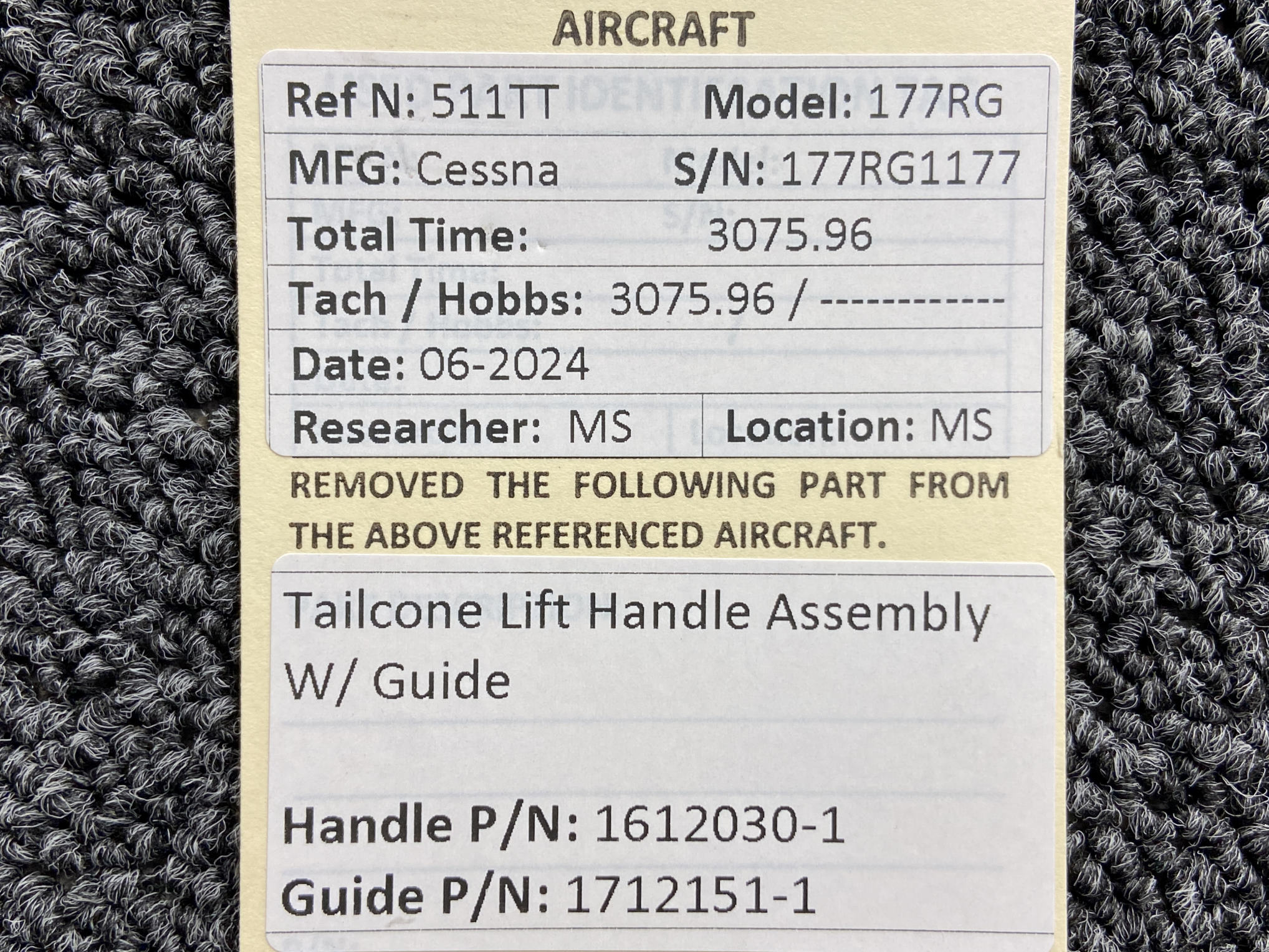 - Handle Part Number: 1612030-1