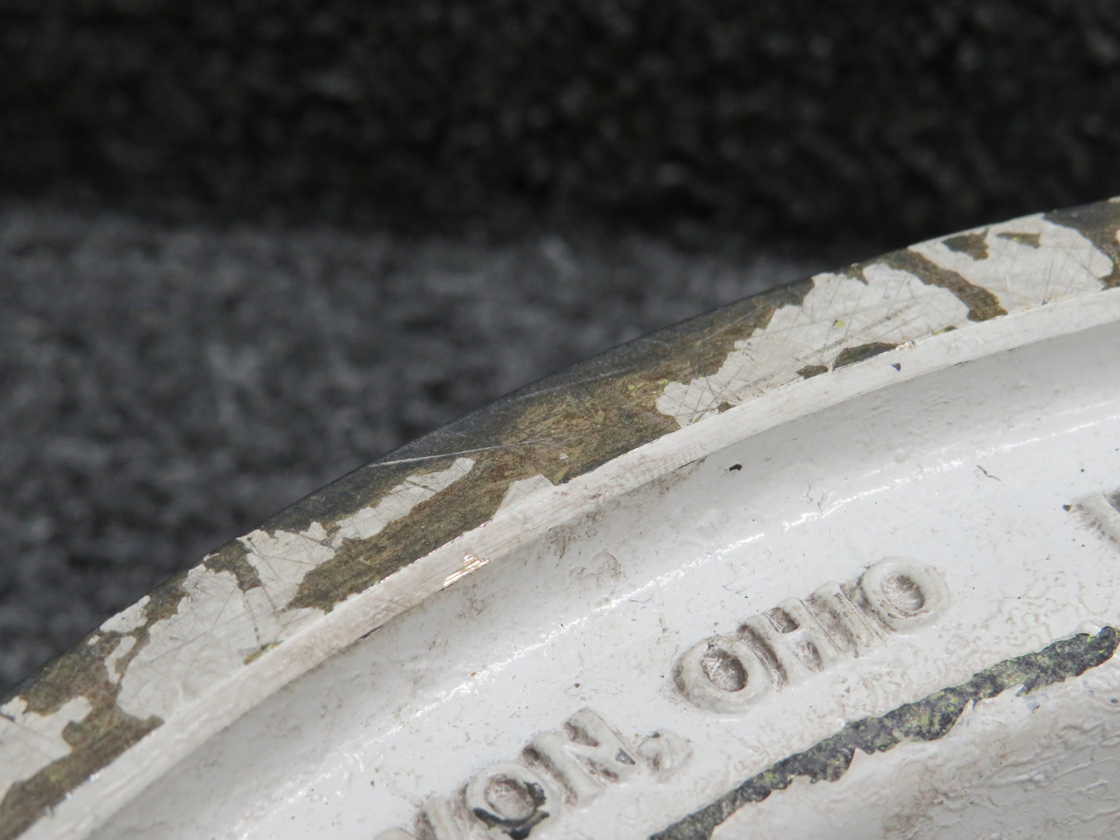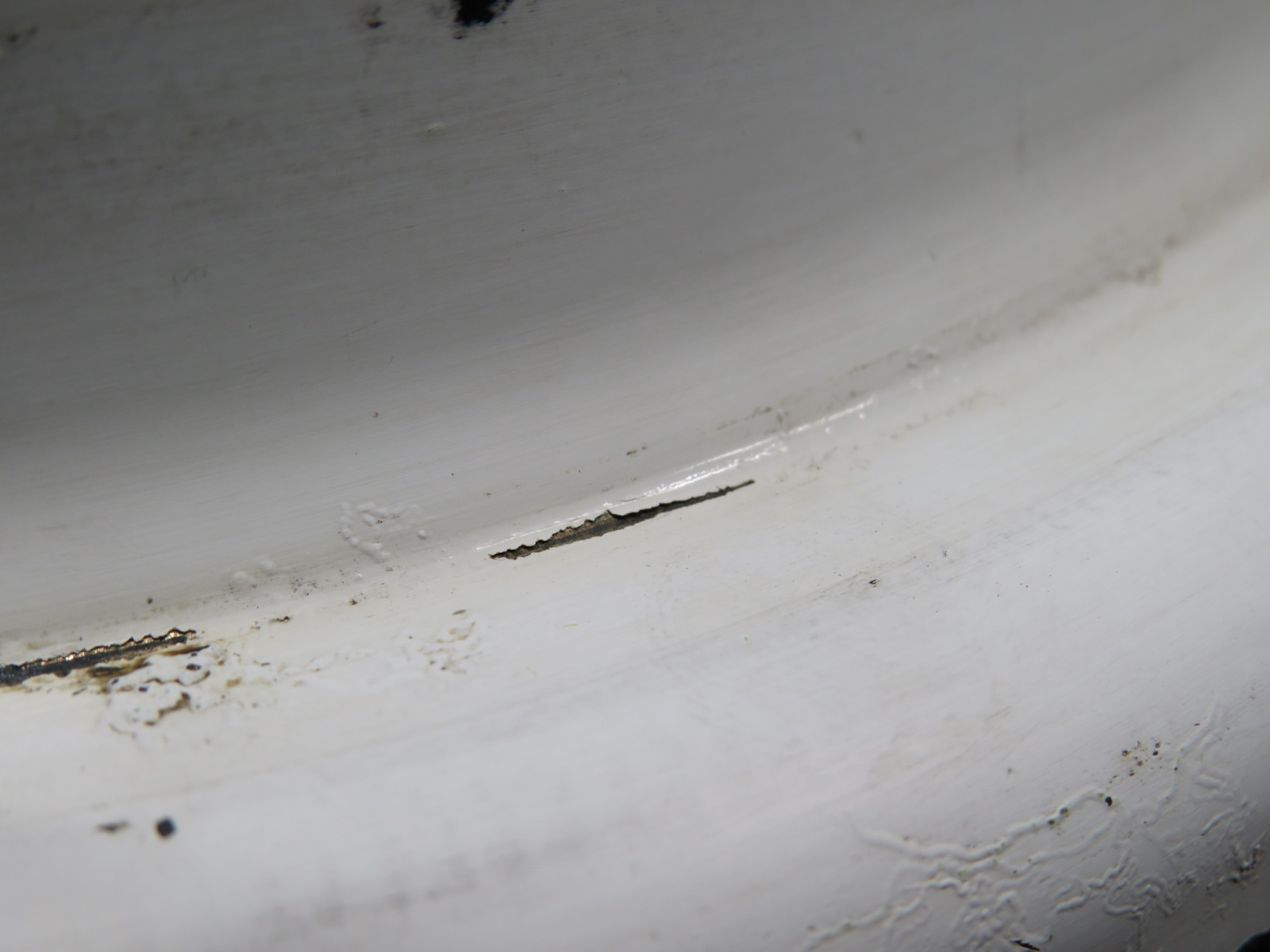 - Small dents around tire line.