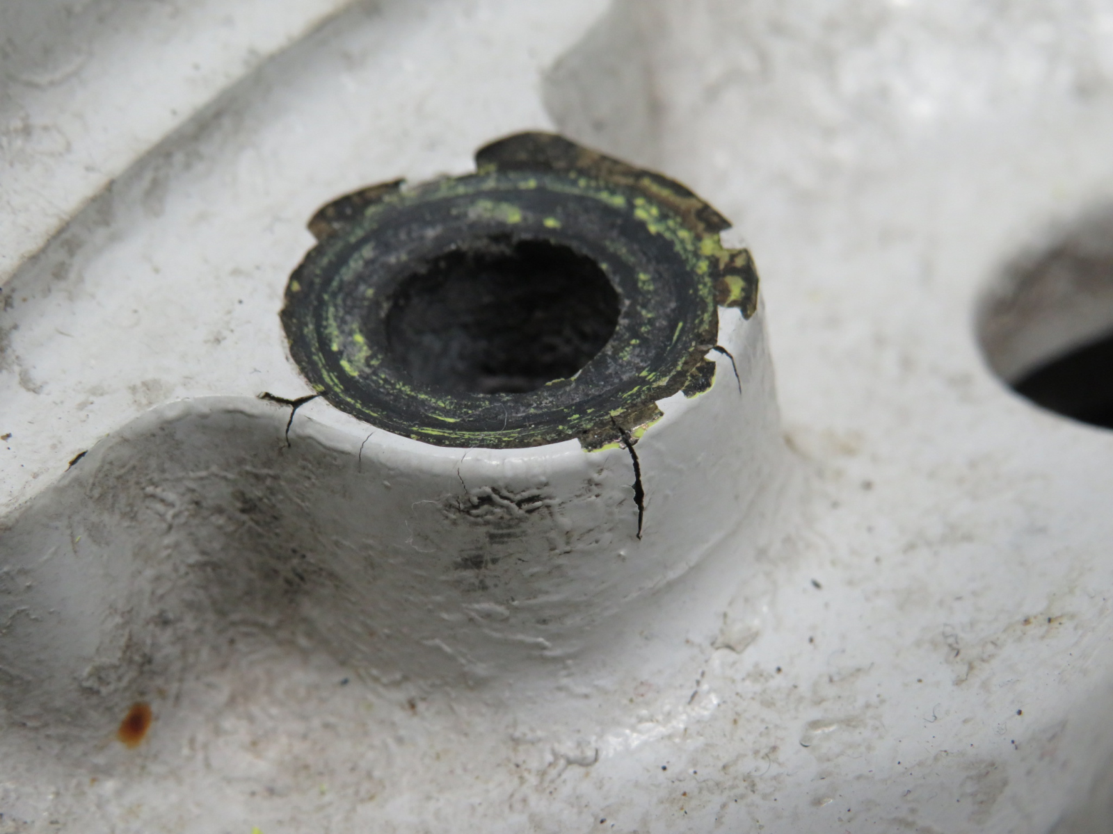 - Multiple bolt holes are cracked.