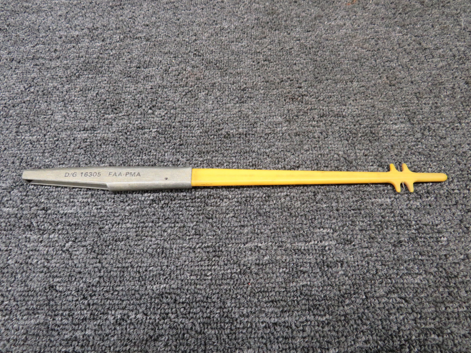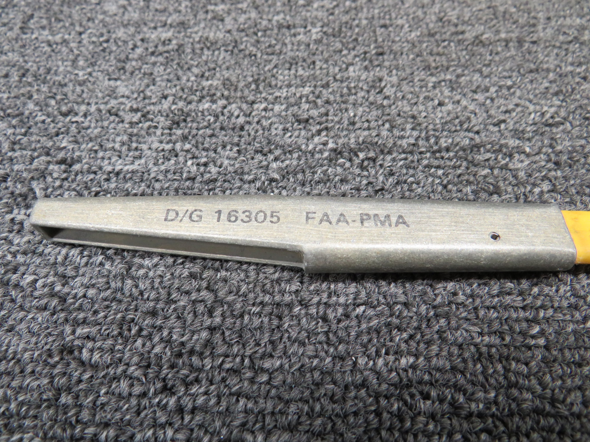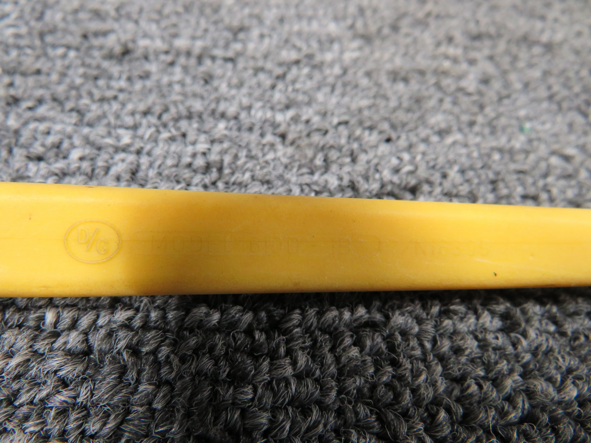 - Part and model number are stamped on the yellow rod, difficult to photograph