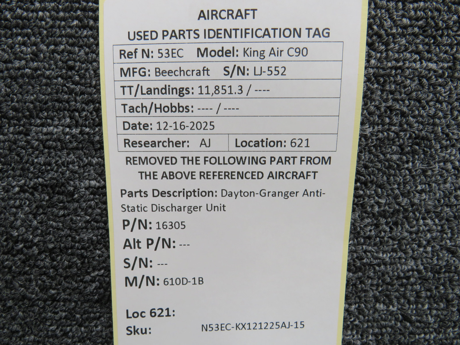 Unless specifically noted, most of our used airplane parts are sold in the condition they were removed, which means you should expect the usual signs of wear and tear.
