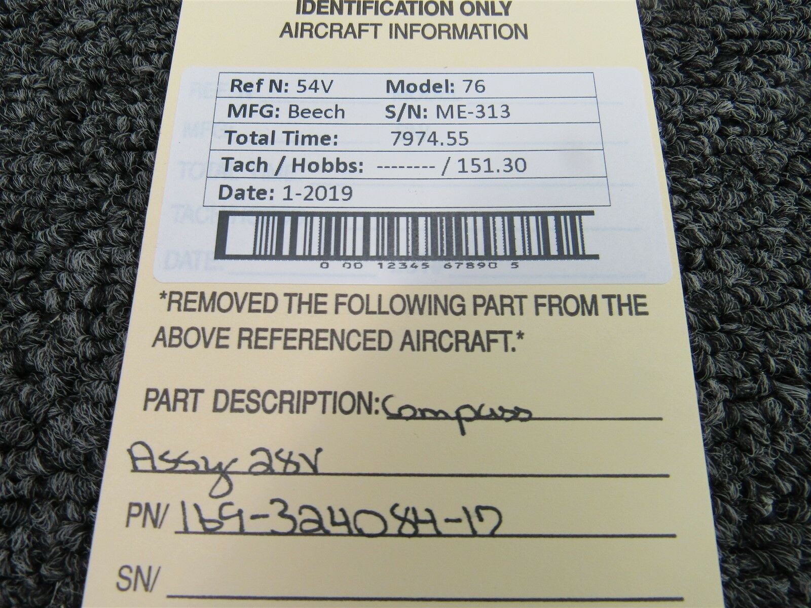 Part removed from aircraft in its original, unaltered state. Most of the inventory available from BAS Part Sales is in As-Removed condition. We removed it from the aircraft in working condition and expect it to pass inspection. As-Removed items come with our 90-day Money-Back Guarantee. Read More