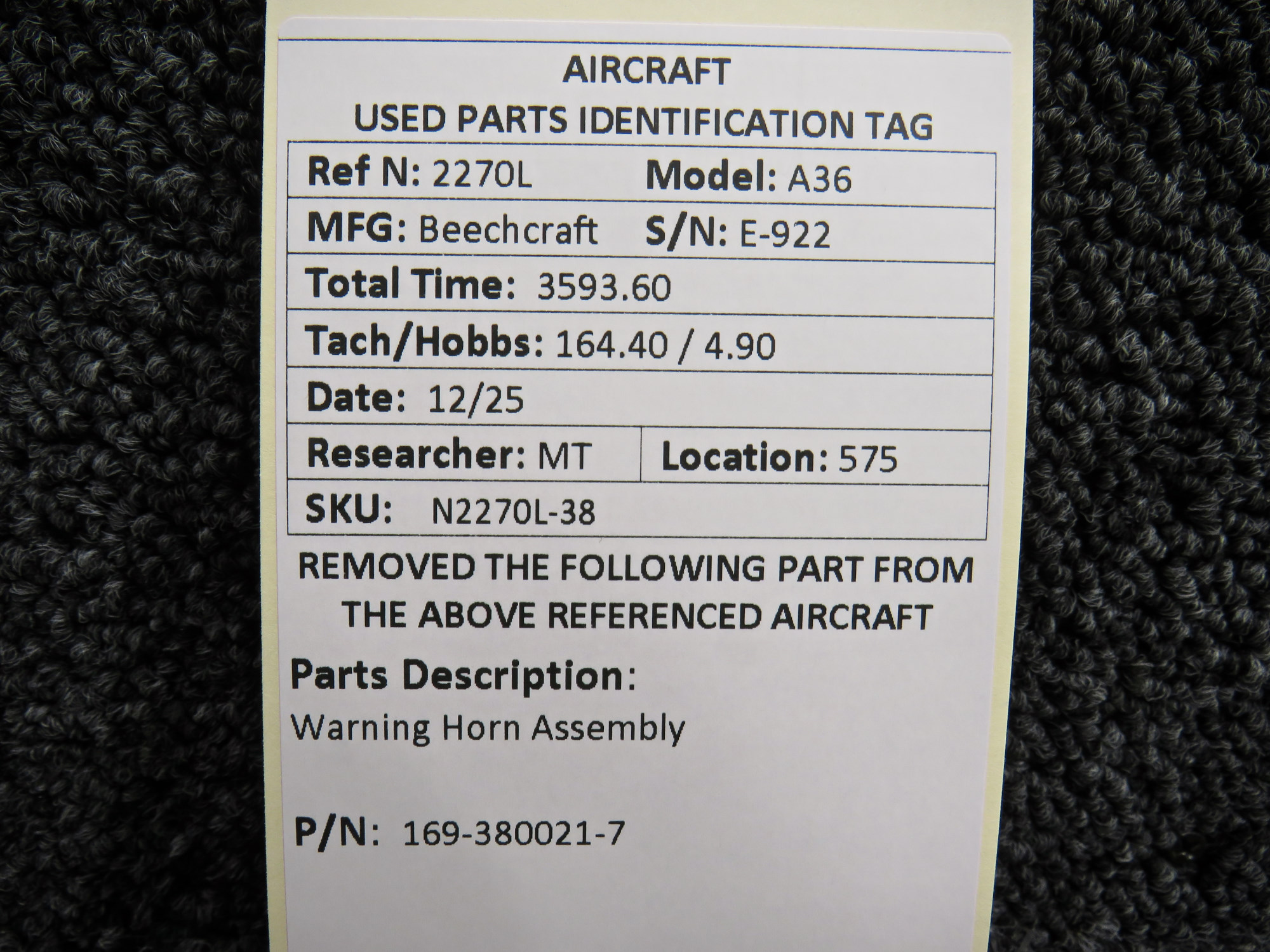 Unless specifically noted, most of our used airplane parts are sold in the condition they were removed, which means you should expect the usual signs of wear and tear.