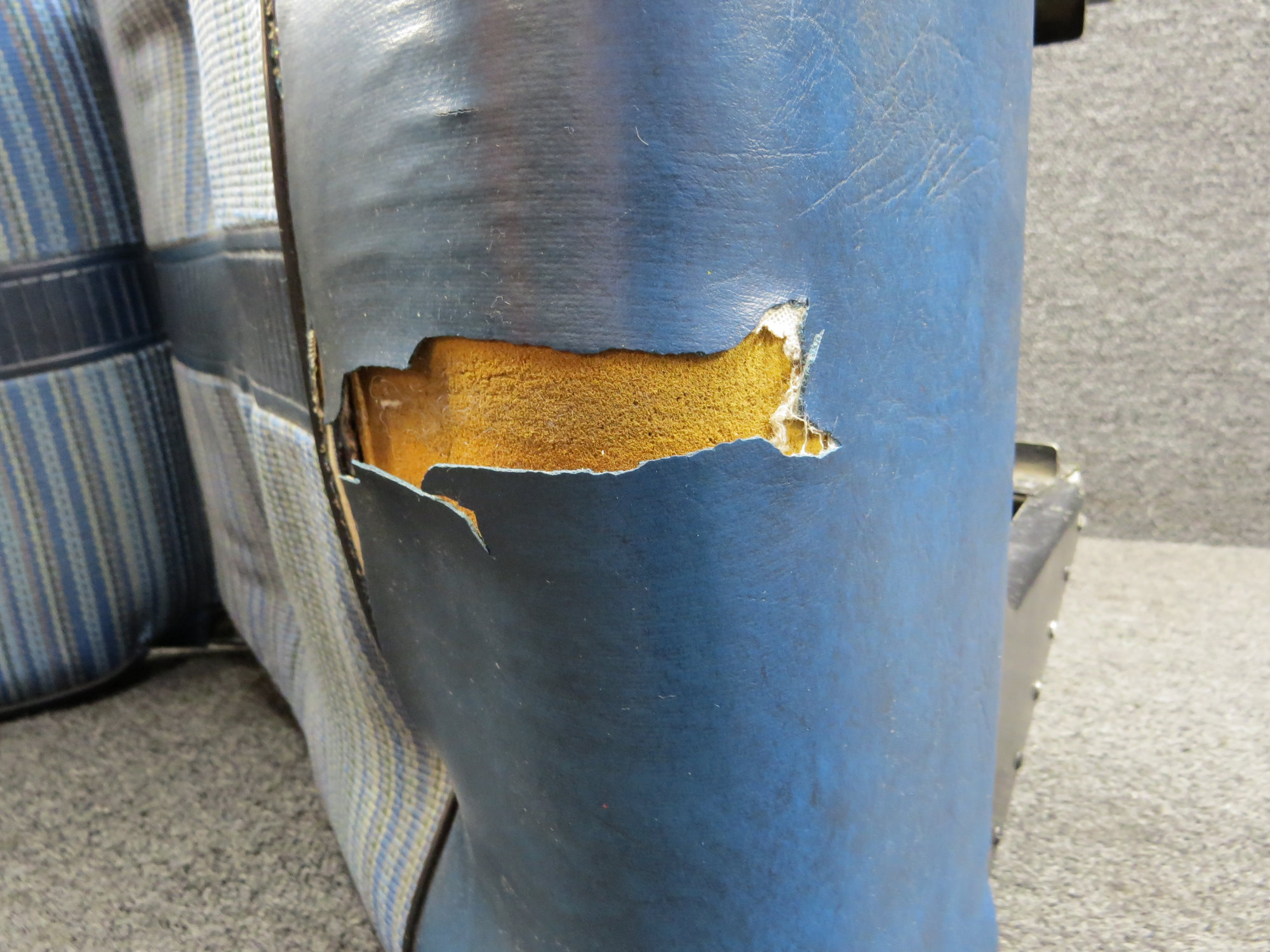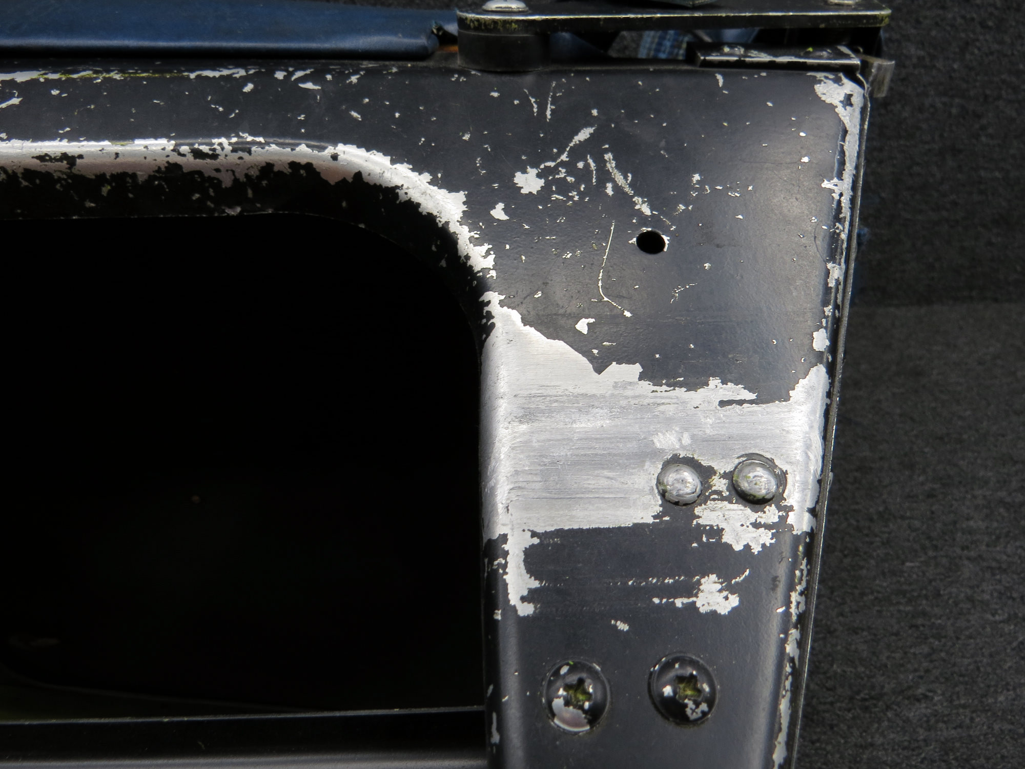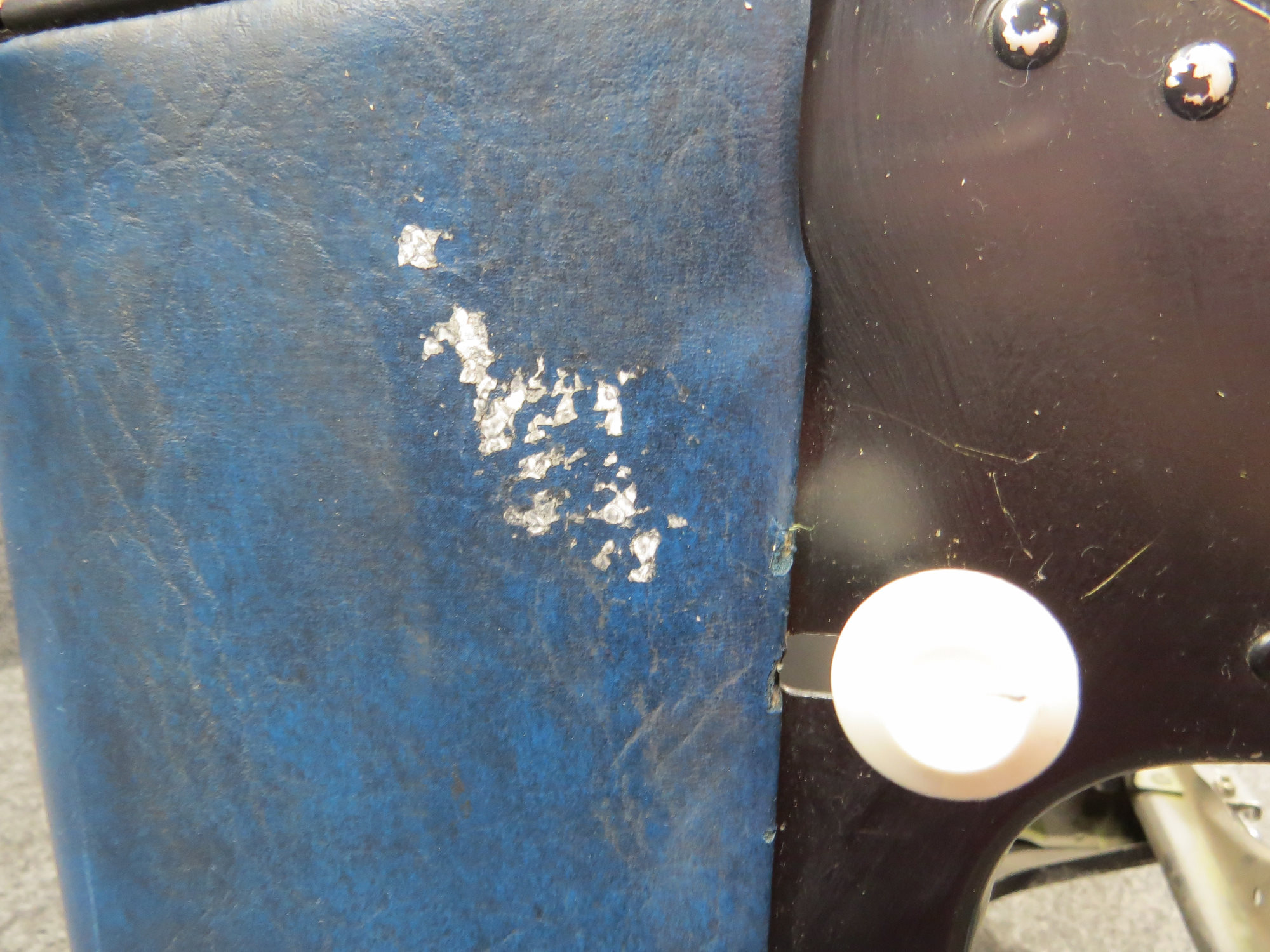- Side strap is ripped, has some tears/rips on seat and worn/scratched paint on seat support