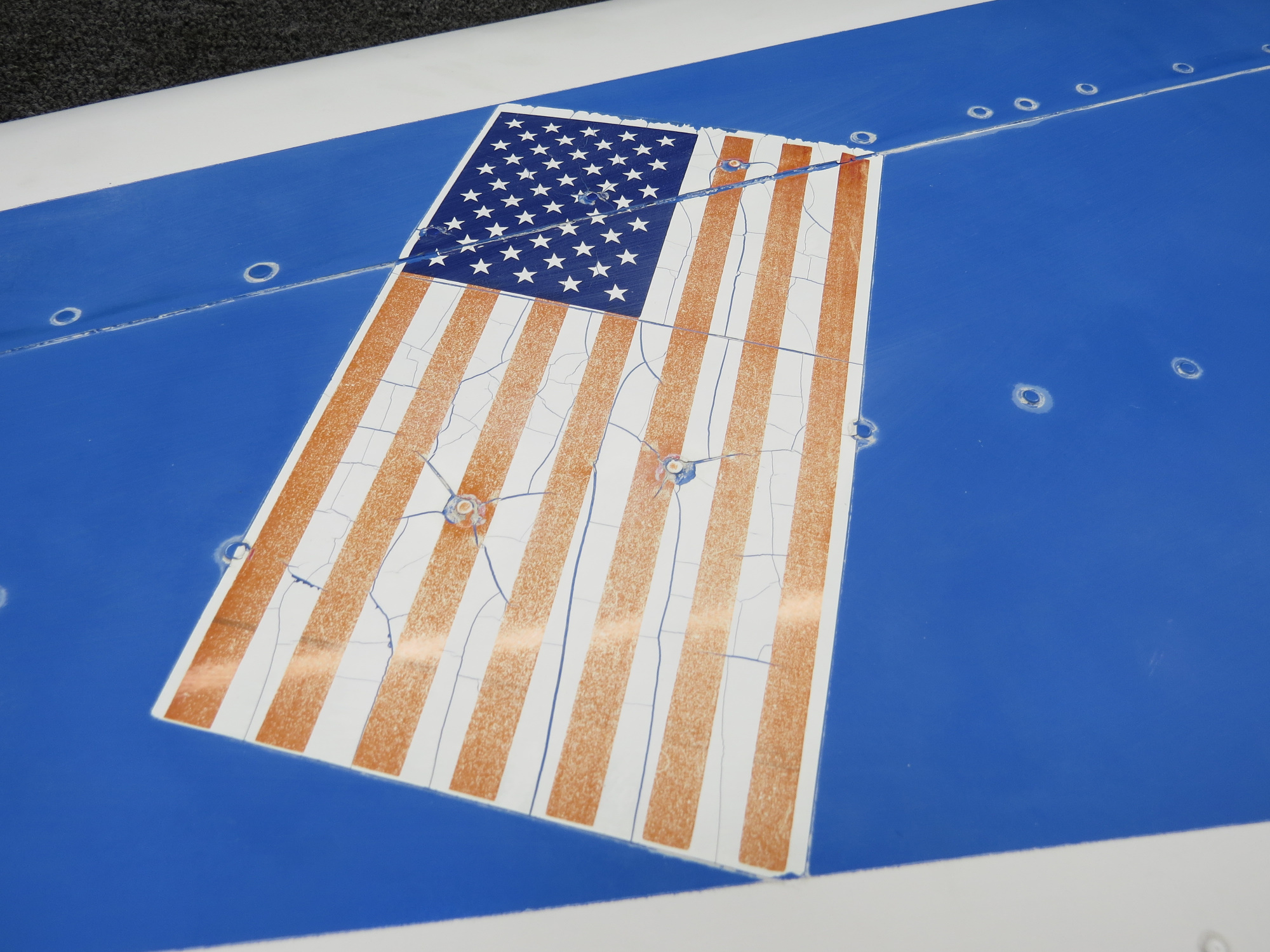- Has some scratches/scuffs, worn holes and minor damage from dorsal fin removal, see pictures for more detail