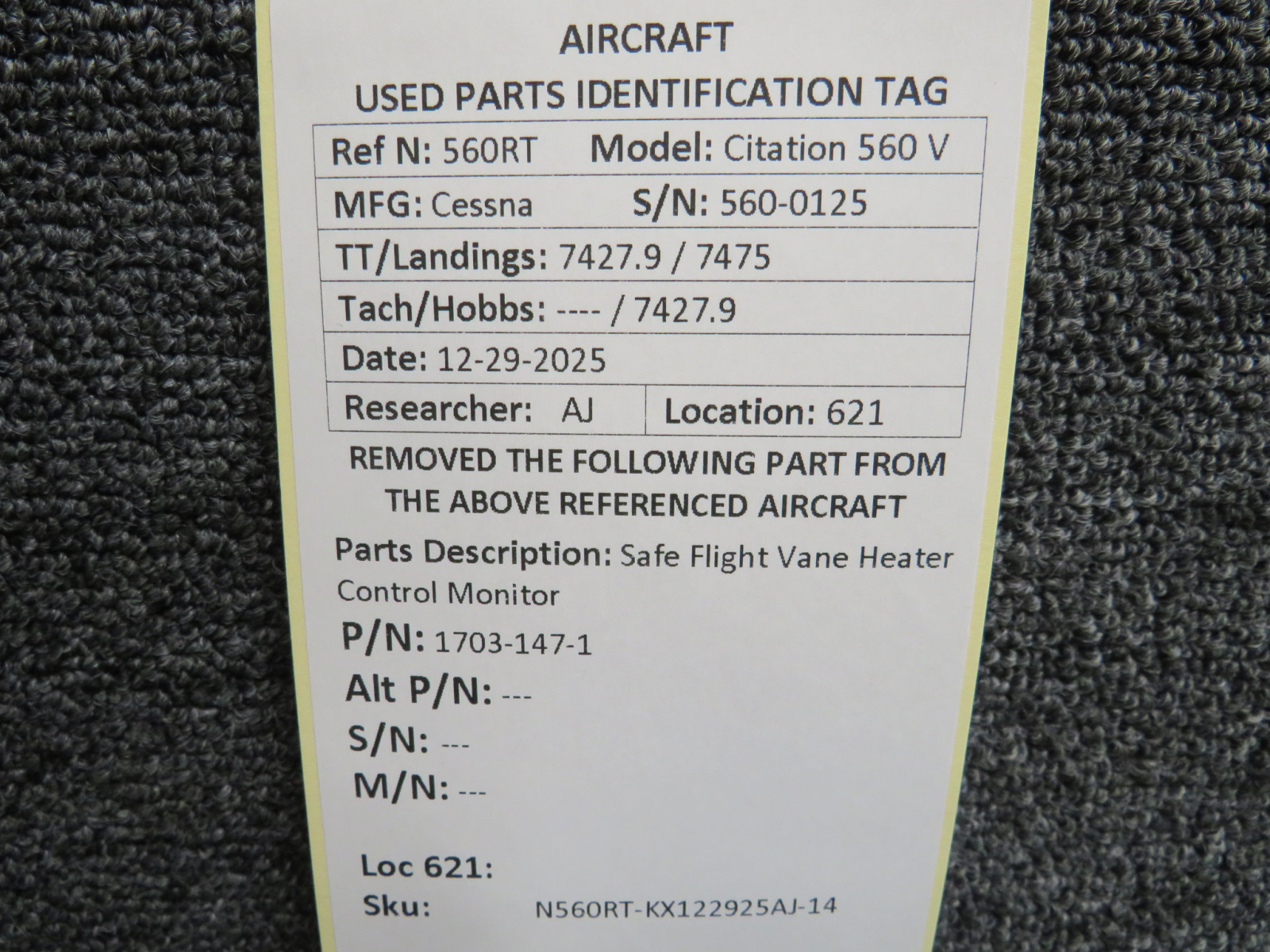 Unless specifically noted, most of our used airplane parts are sold in the condition they were removed, which means you should expect the usual signs of wear and tear.