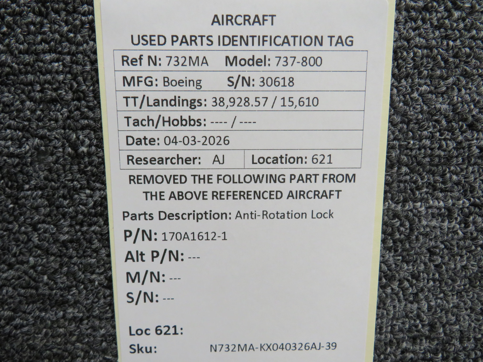 Every part is carefully inspected throughout our process and several times before it goes online. Most items are sold as-removed, just as they came off the aircraft. These parts are not functionally tested. What we do provide is clear photos, full traceability when available, pricing that reflects the as-removed condition, and a no-nonsense 90-day return window.
