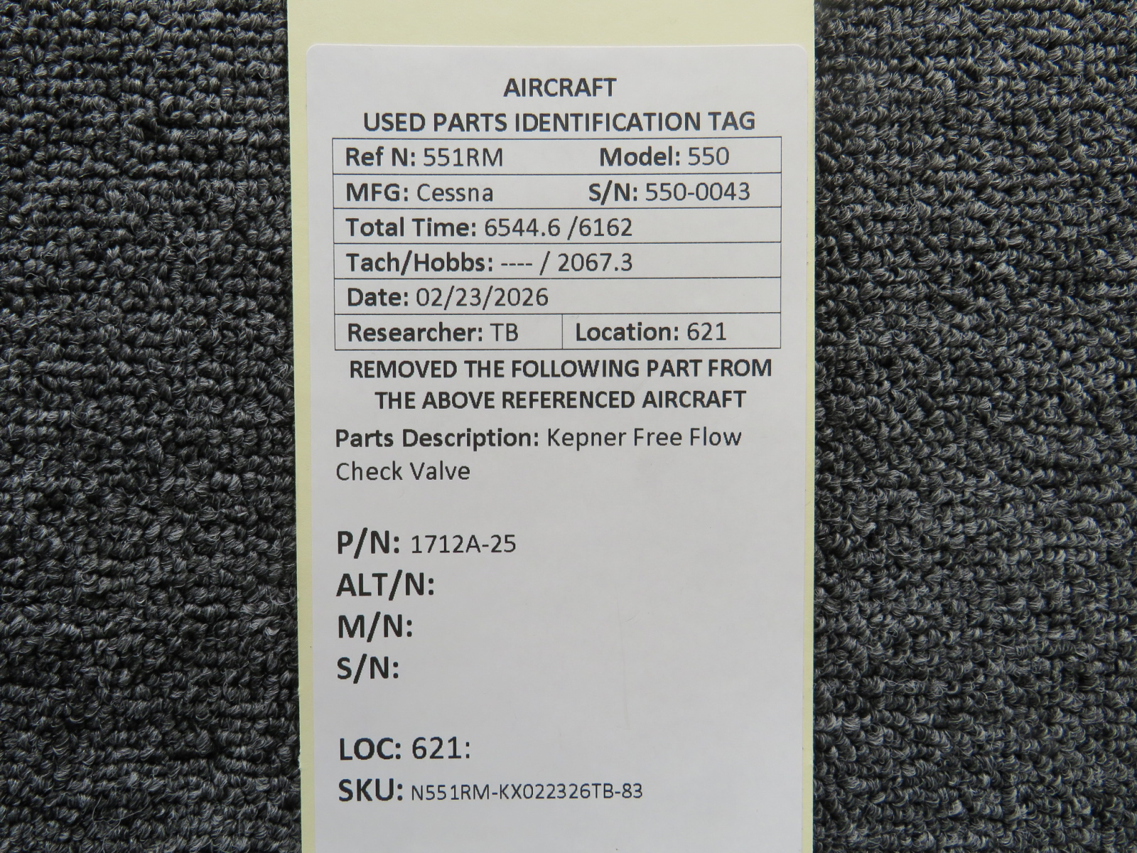 Every part is carefully inspected throughout our process and several times before it goes online. Most items are sold as-removed, just as they came off the aircraft. These parts are not functionally tested. What we do provide is clear photos, full traceability when available, pricing that reflects the as-removed condition, and a no-nonsense 90-day return window.