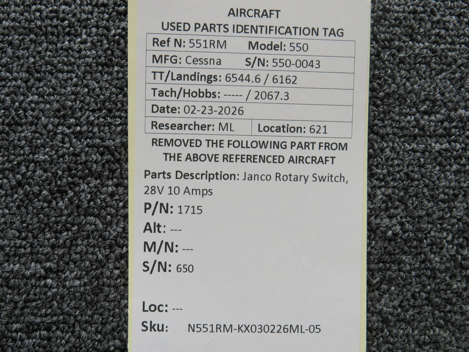 Every part is carefully inspected throughout our process and several times before it goes online. Most items are sold as-removed, just as they came off the aircraft. These parts are not functionally tested. What we do provide is clear photos, full traceability when available, pricing that reflects the as-removed condition, and a no-nonsense 90-day return window.