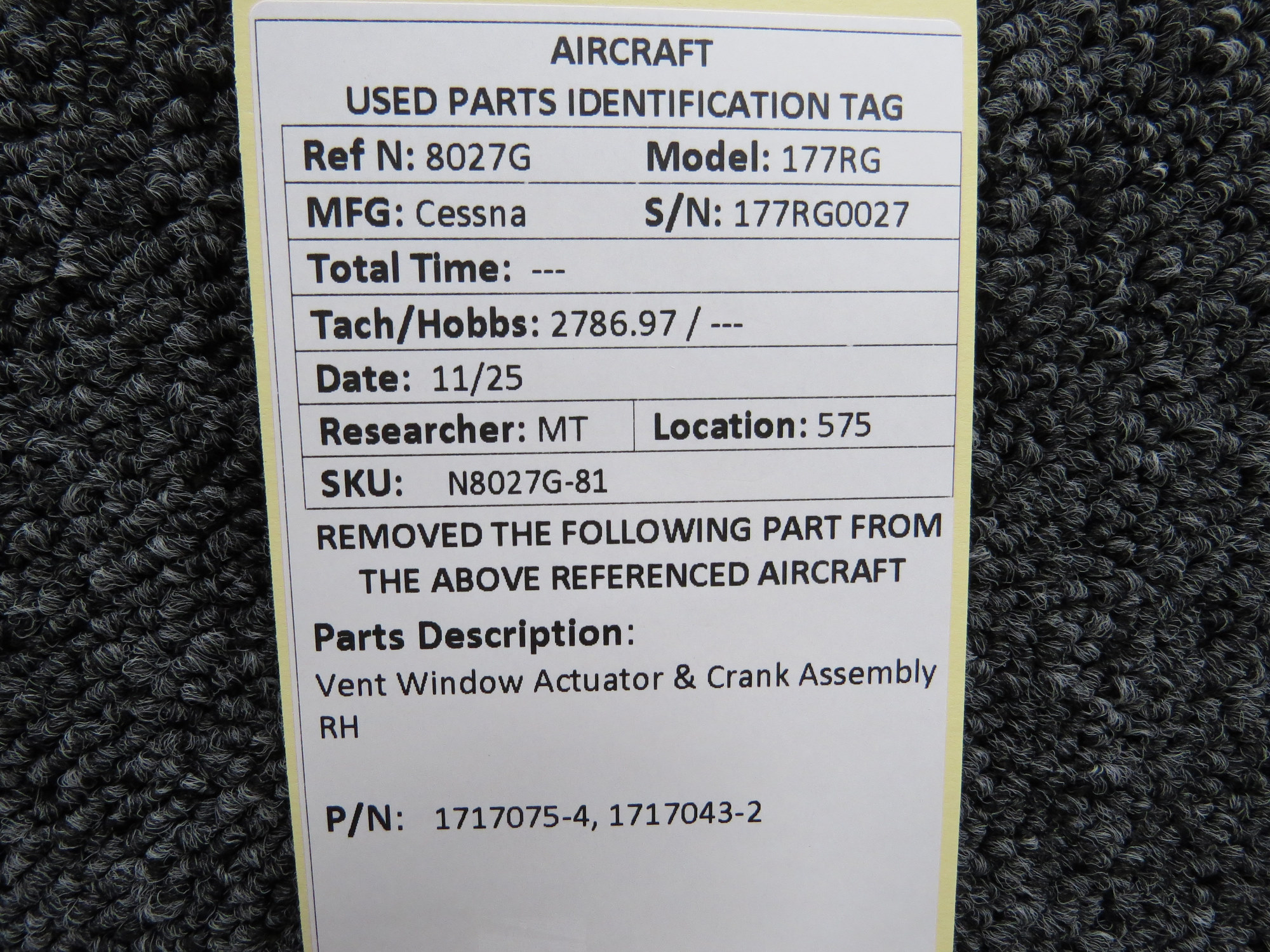 Unless specifically noted, most of our used airplane parts are sold in the condition they were removed, which means you should expect the usual signs of wear and tear.