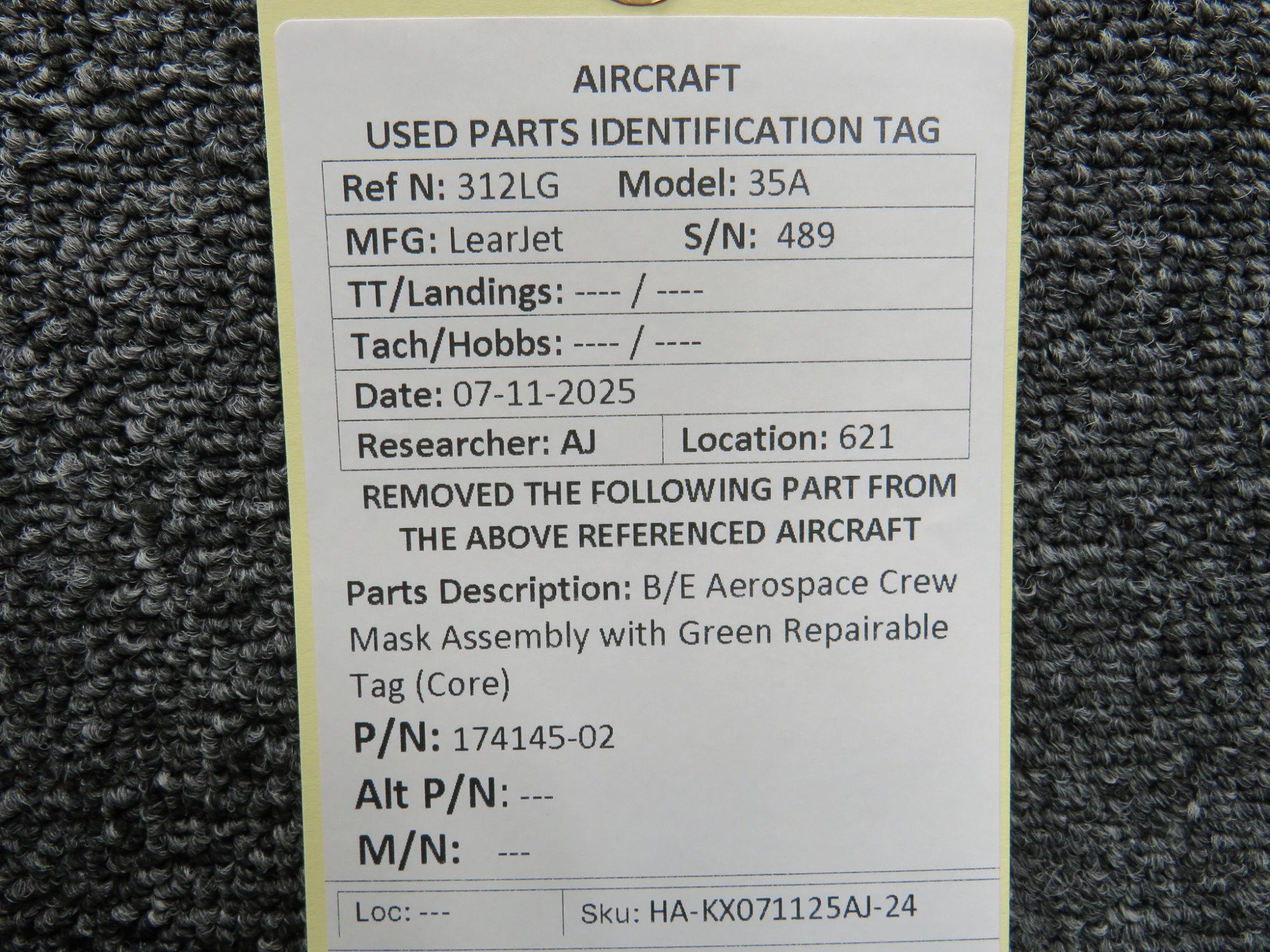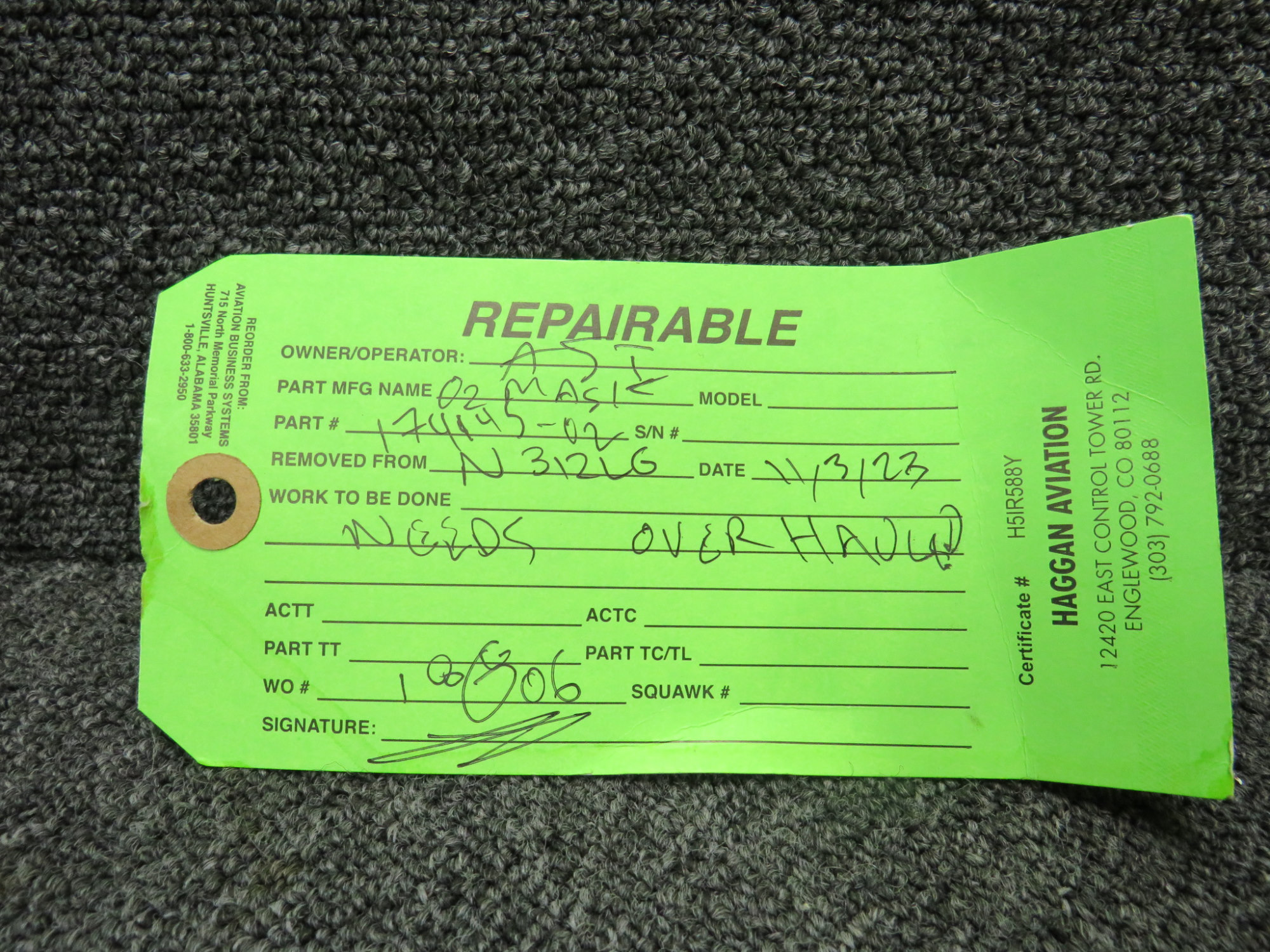 - Includes green repair tag