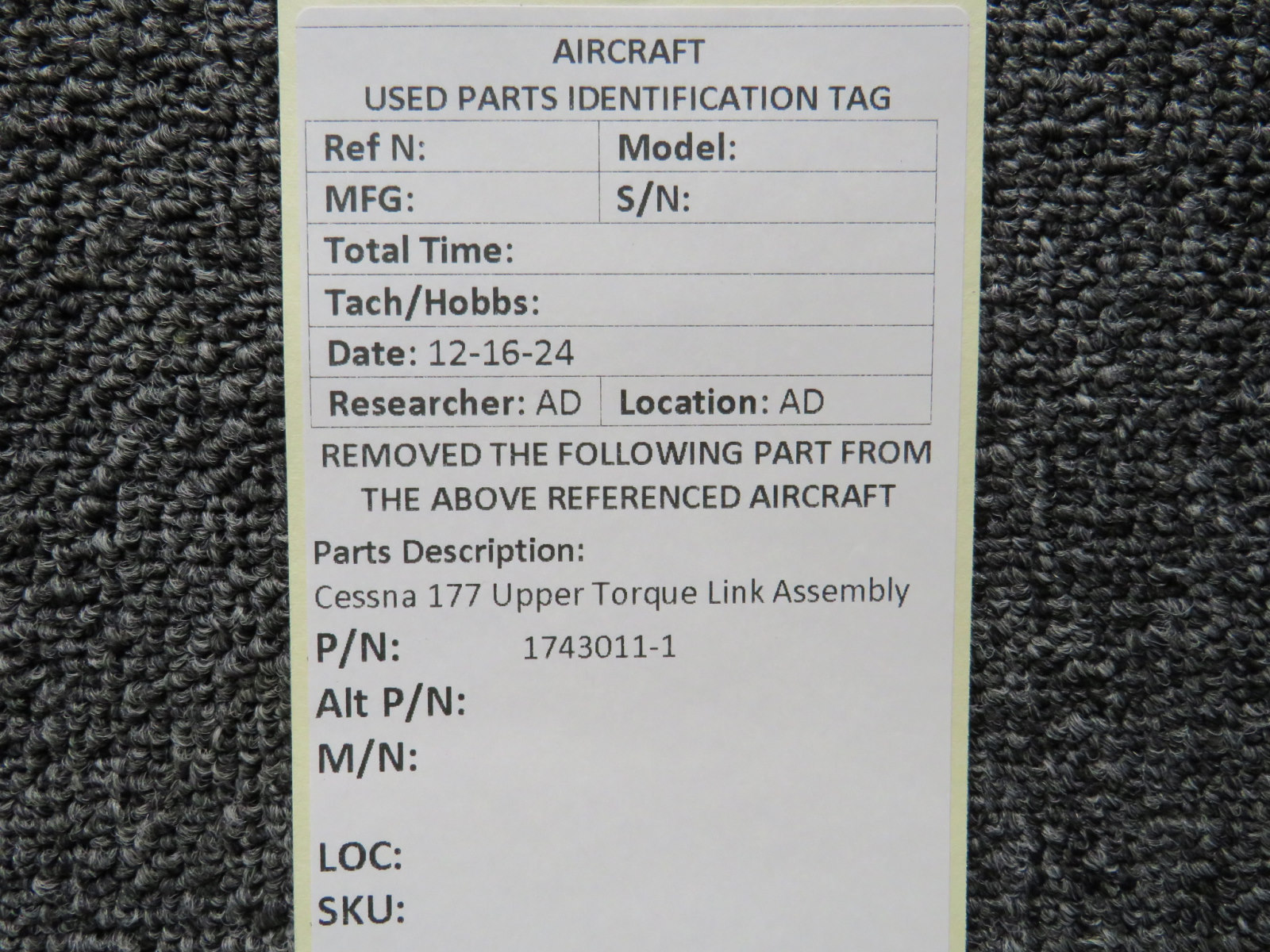 Attention International Buyers: We routinely export aircraft parts to destinations around the world. All import duties, taxes, and any other charges related to importing parts to your country are not included in the price of the item or shipping charges, these are 100% the responsibility of the buyer. Please check with your country's customs office to help determine what these additional costs will be prior to purchasing. We do not mark merchandise value below purchase value nor mark items as "gifts" as both U.S. and international law strictly prohibits this. We do not ship to forwarding shipping stations. A business or residential address is required for delivery.