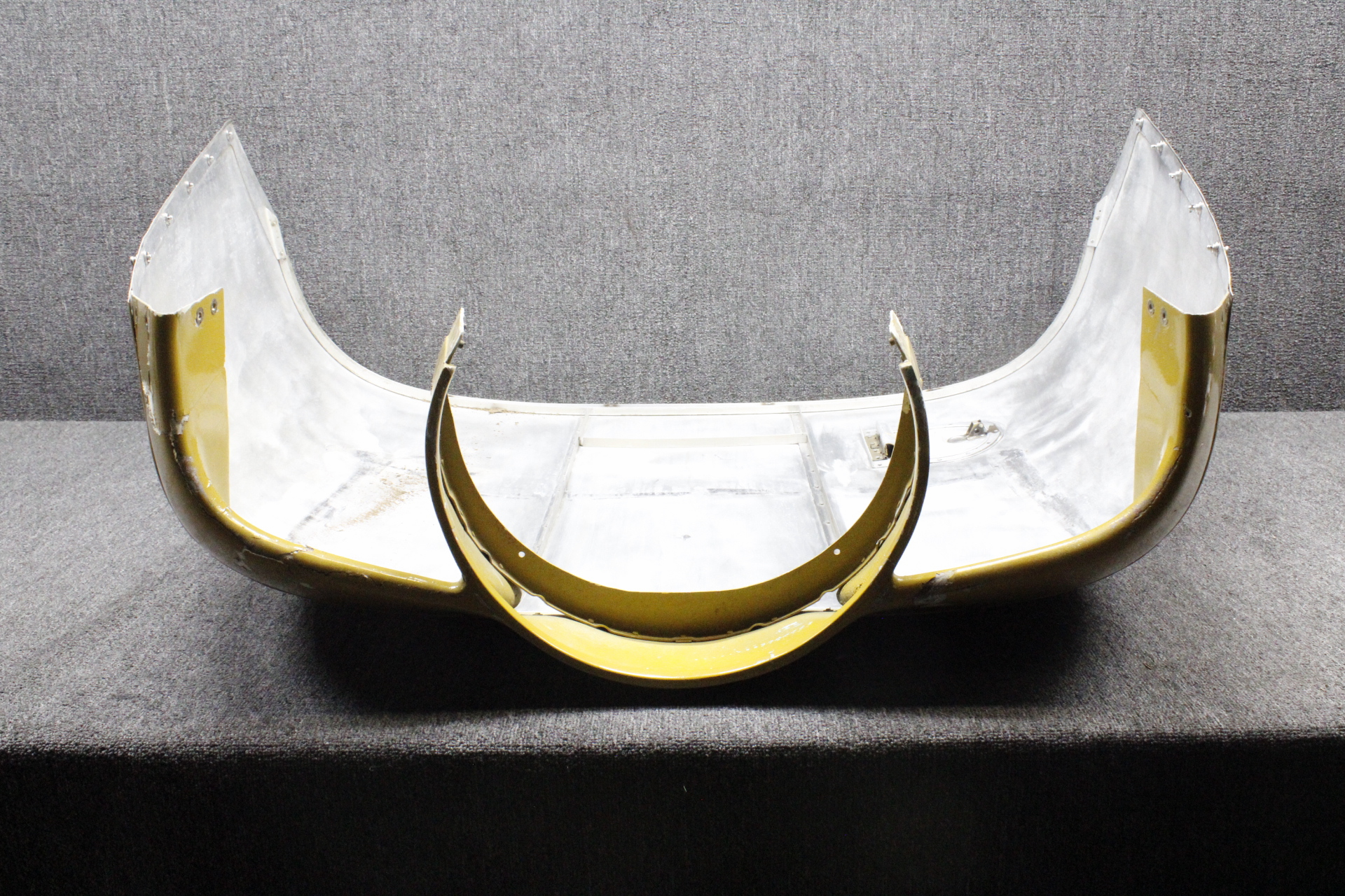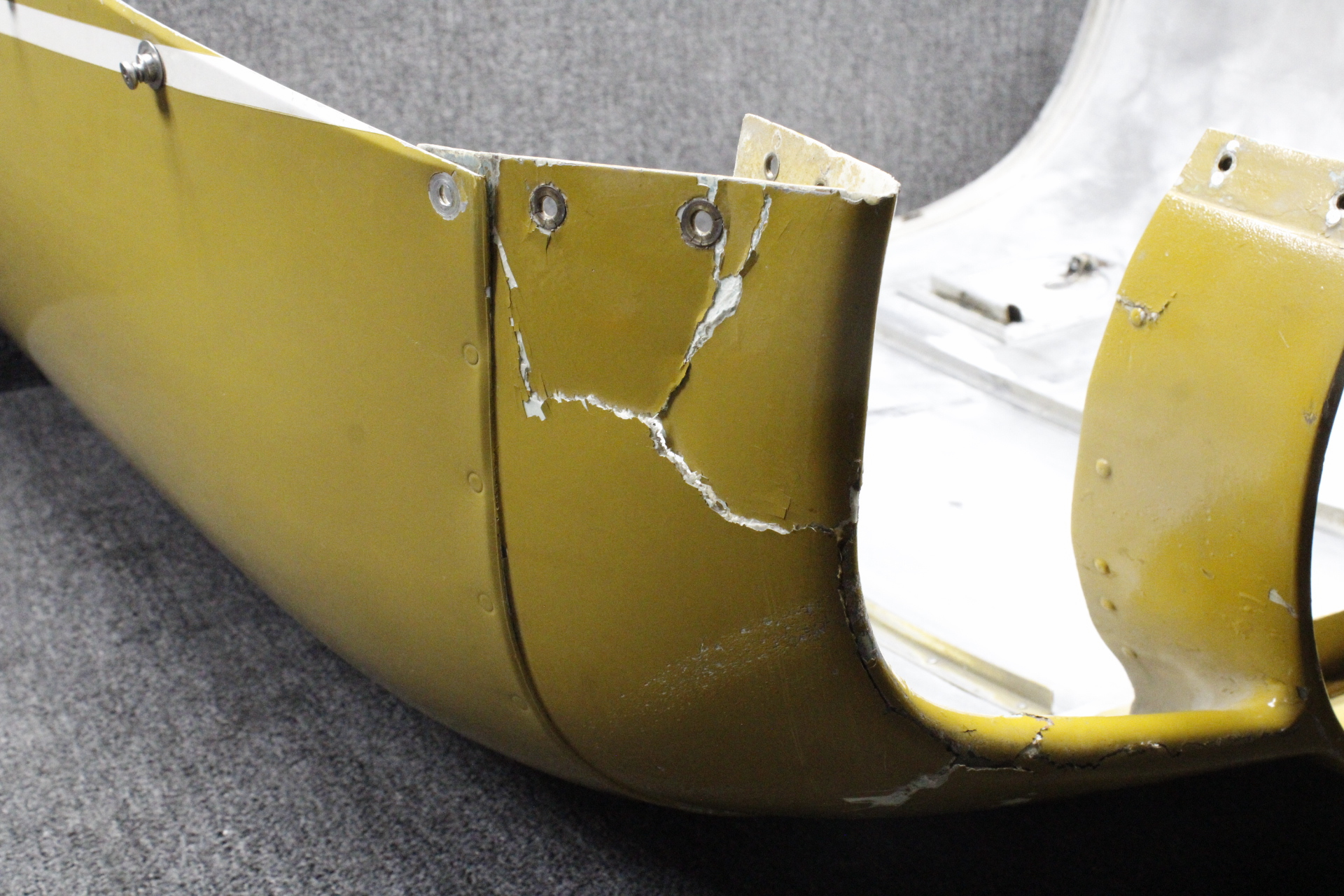 - There is a large crack on the forward piece and a couple minor surface dents