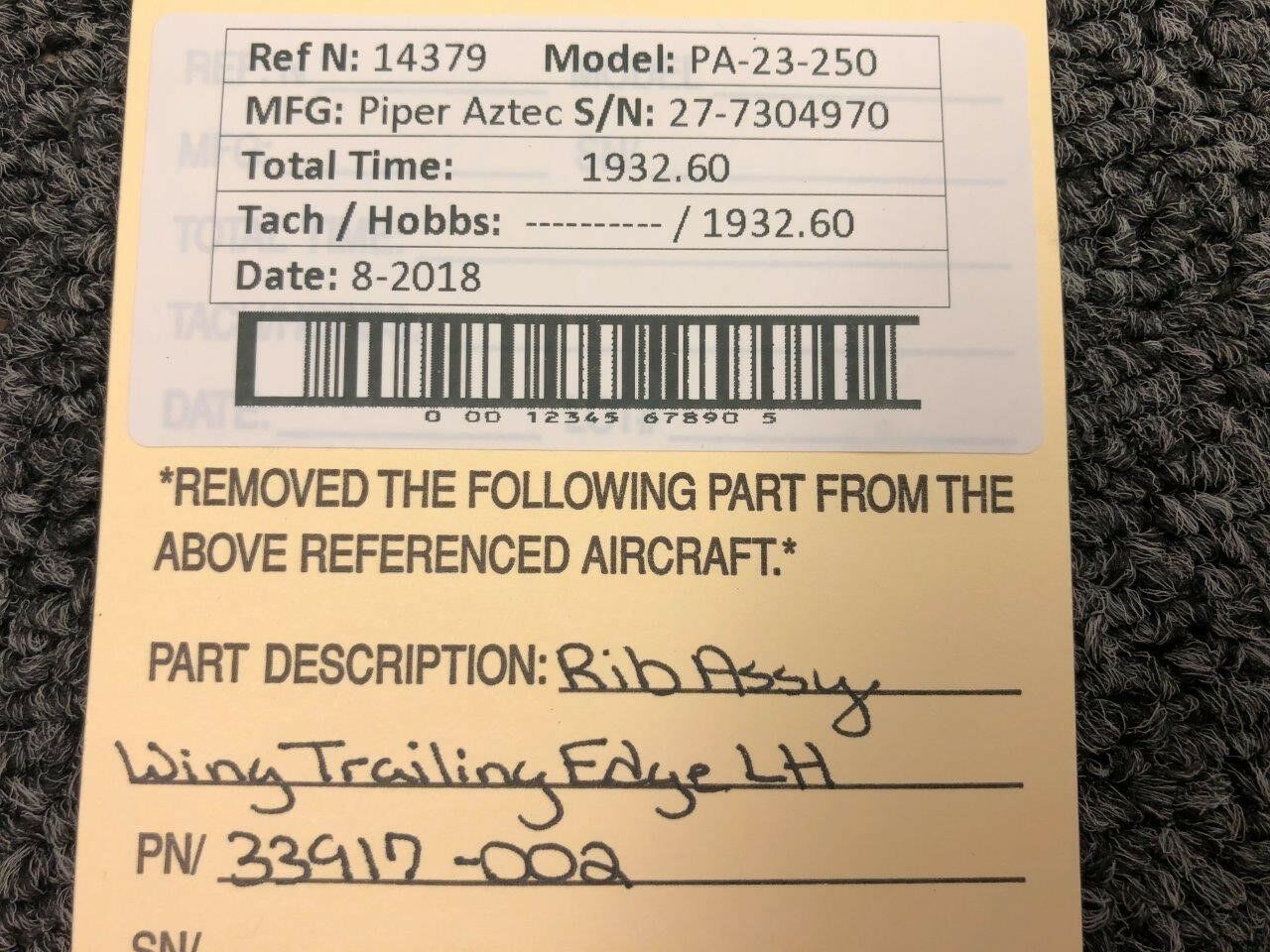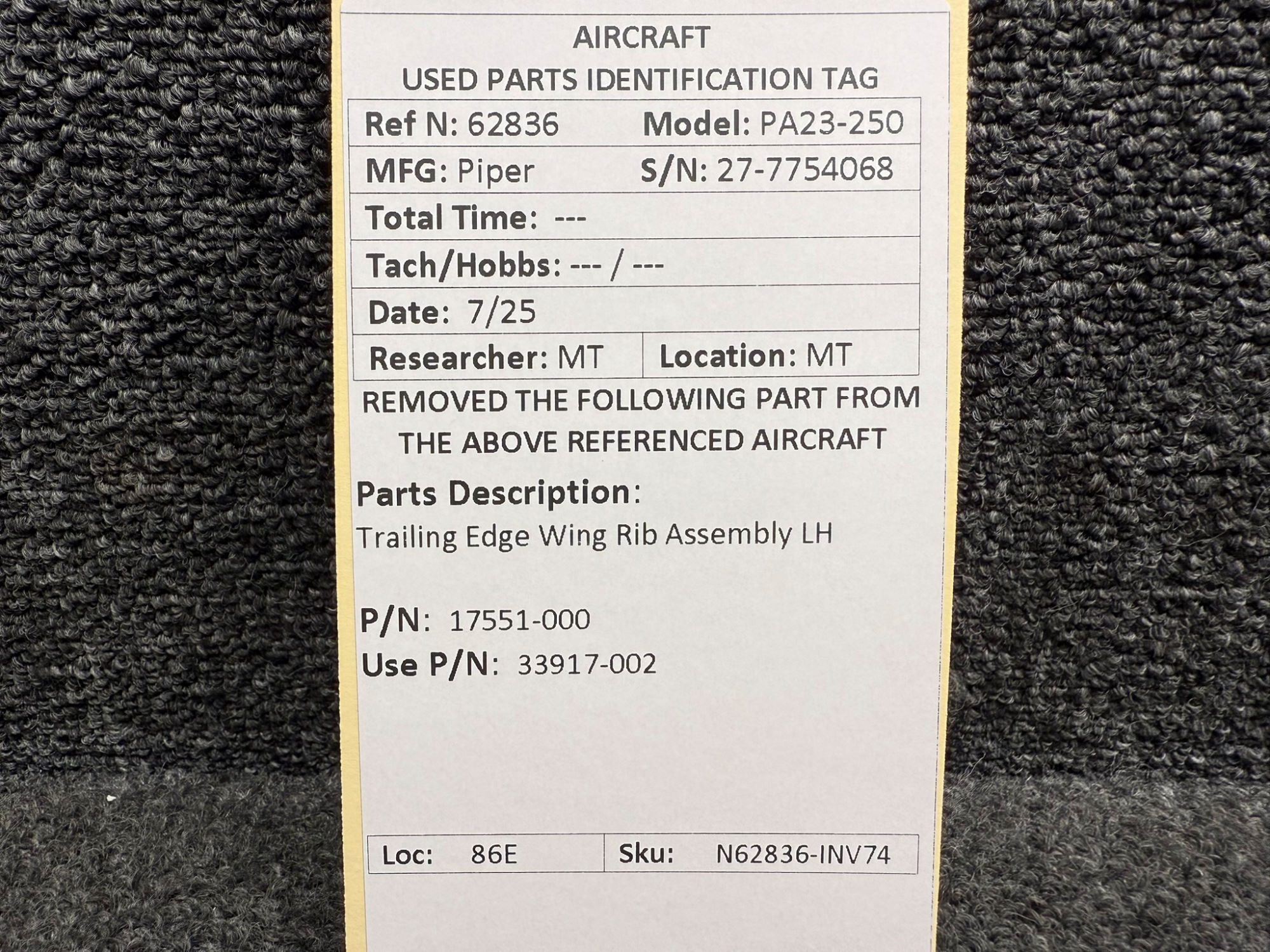Unless specifically noted, most of our used airplane parts are sold in the condition they were removed, which means you should expect the usual signs of wear and tear.