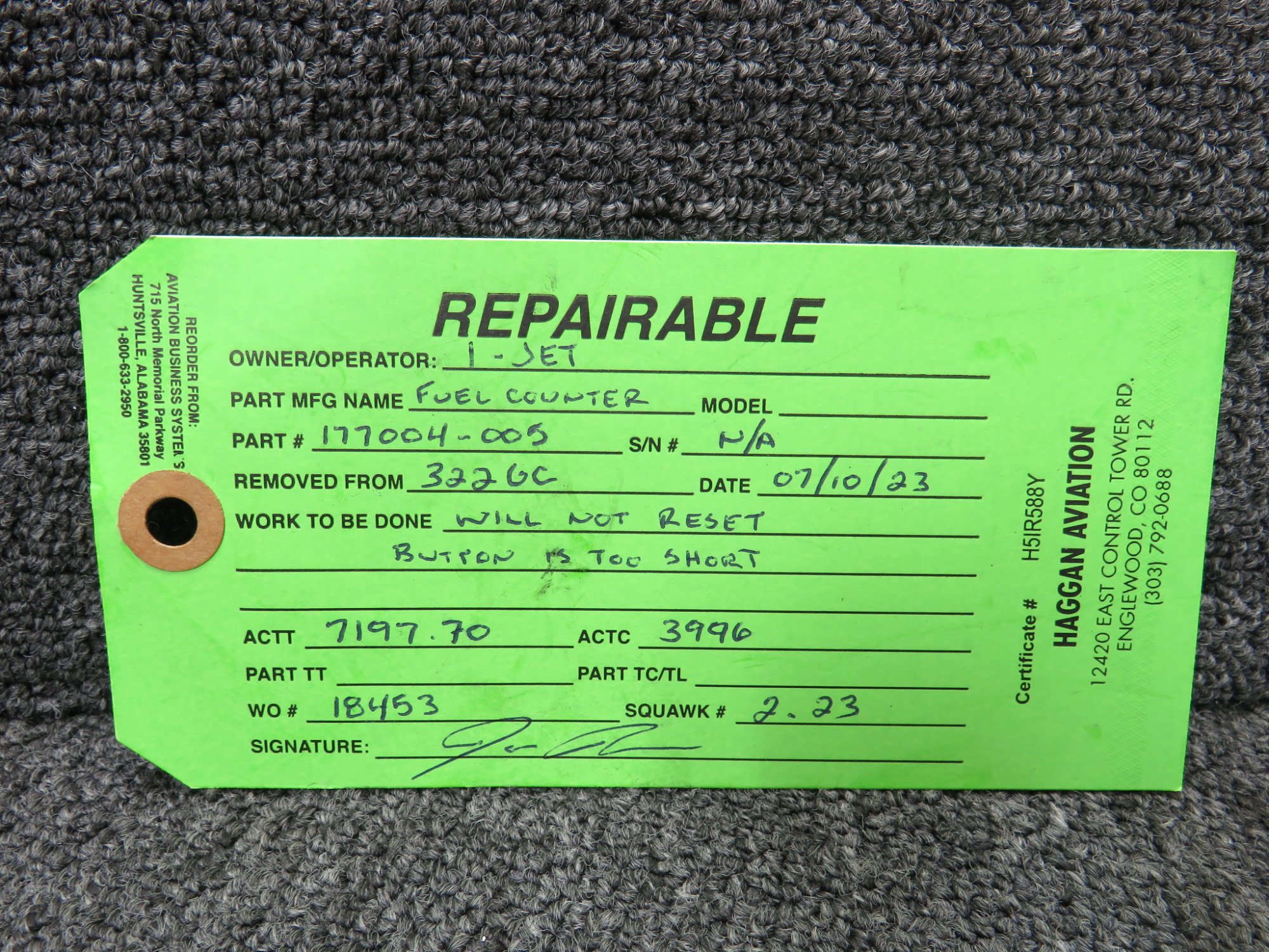 - Includes green repair tag