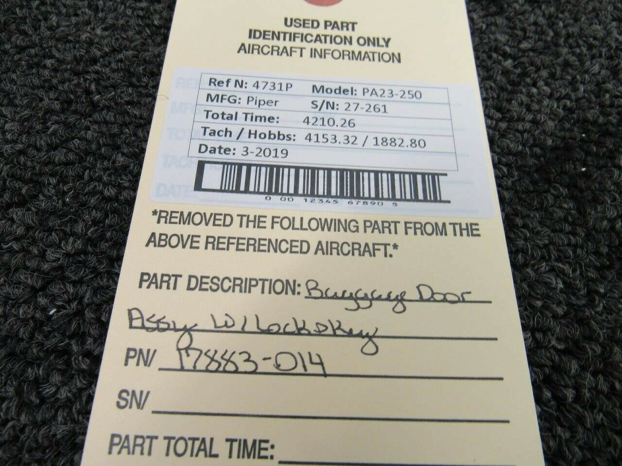 17883-014 Piper PA23-250 Baggage Door Assy w/ Lock & Key