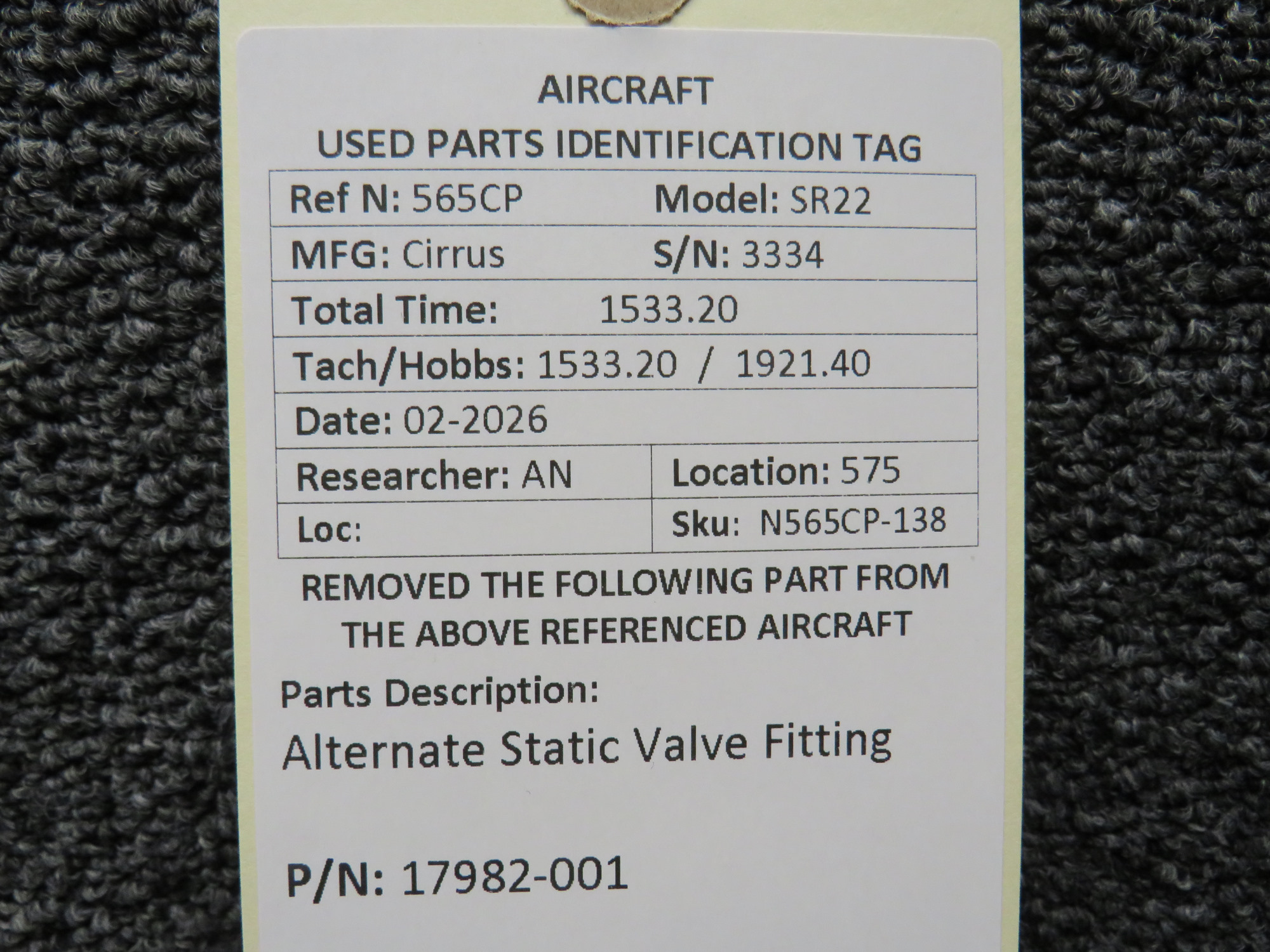 Every part is carefully inspected throughout our process and several times before it goes online. Most items are sold as-removed, just as they came off the aircraft. These parts are not functionally tested. What we do provide is clear photos, full traceability when available, pricing that reflects the as-removed condition, and a no-nonsense 90-day return window.