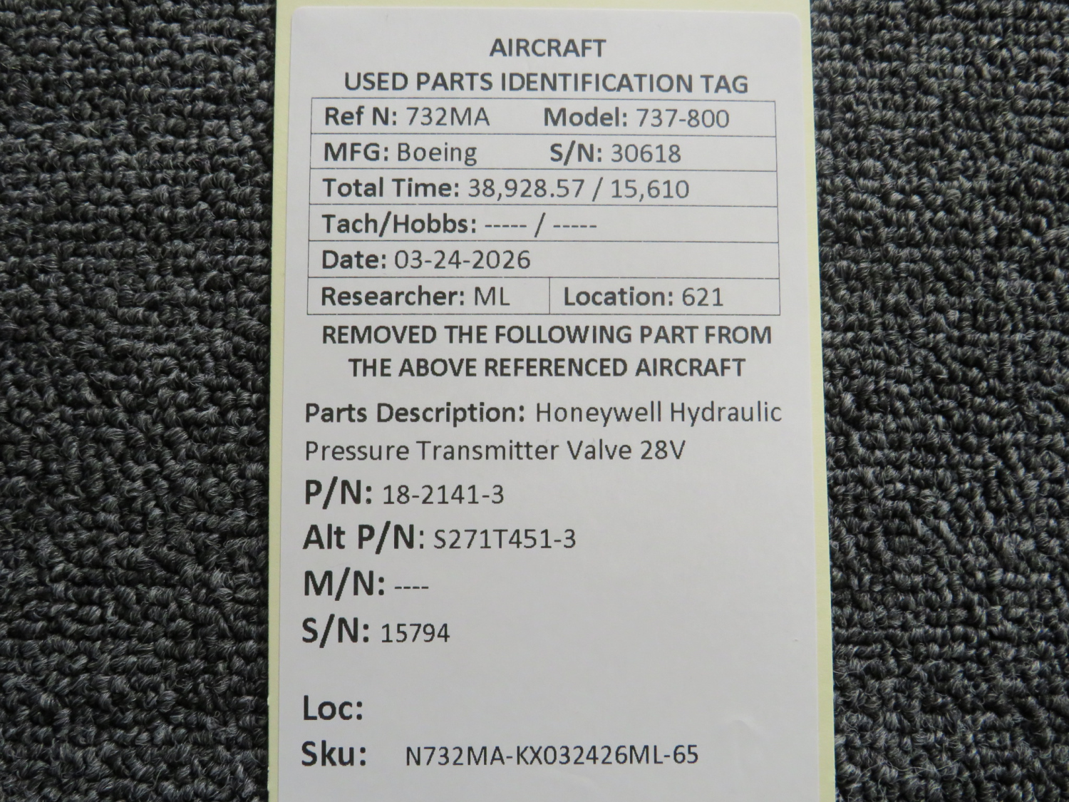Every part is carefully inspected throughout our process and several times before it goes online. Most items are sold as-removed, just as they came off the aircraft. These parts are not functionally tested. What we do provide is clear photos, full traceability when available, pricing that reflects the as-removed condition, and a no-nonsense 90-day return window.
