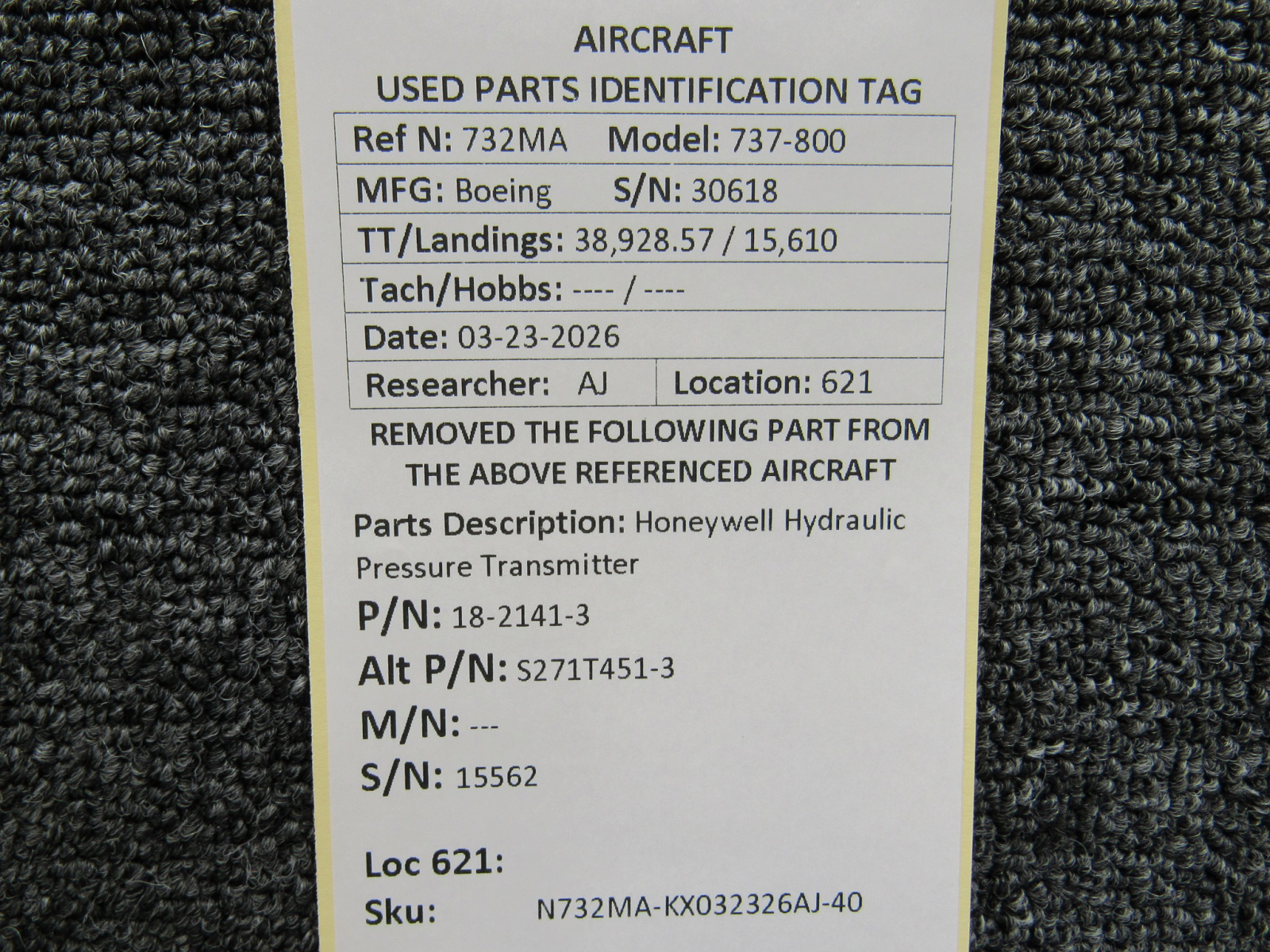 Every part is carefully inspected throughout our process and several times before it goes online. Most items are sold as-removed, just as they came off the aircraft. These parts are not functionally tested. What we do provide is clear photos, full traceability when available, pricing that reflects the as-removed condition, and a no-nonsense 90-day return window.