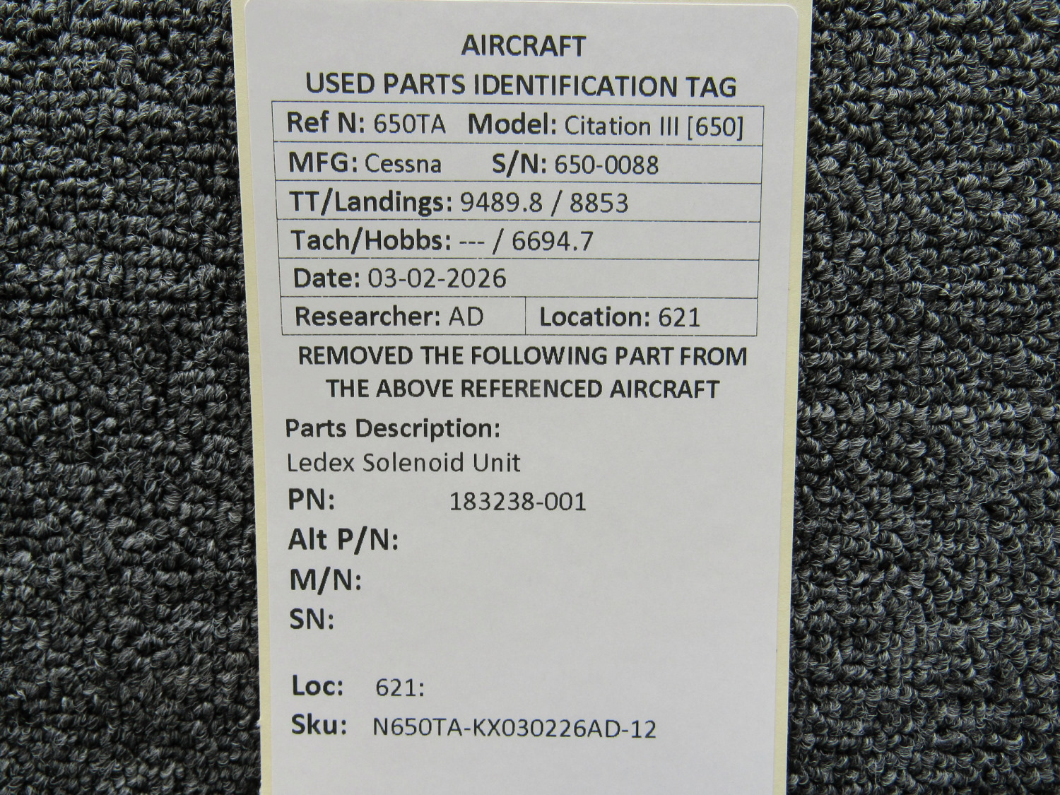 Every part is carefully inspected throughout our process and several times before it goes online. Most items are sold as-removed, just as they came off the aircraft. These parts are not functionally tested. What we do provide is clear photos, full traceability when available, pricing that reflects the as-removed condition, and a no-nonsense 90-day return window.
