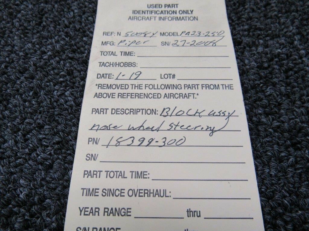 18399-300 Piper PA23-250 Block Assy Nose Wheel Steering