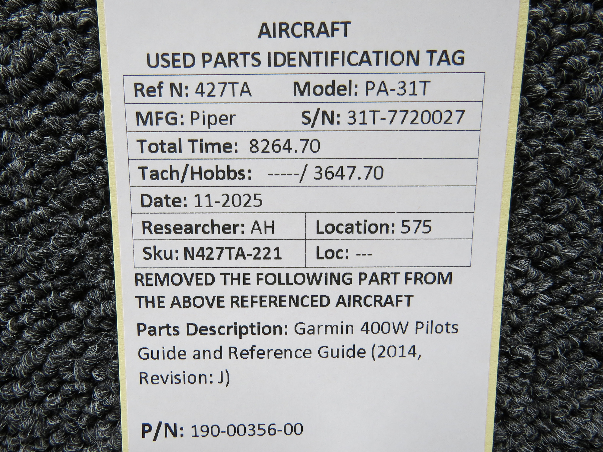 Unless specifically noted, most of our used airplane parts are sold in the condition they were removed, which means you should expect the usual signs of wear and tear.
