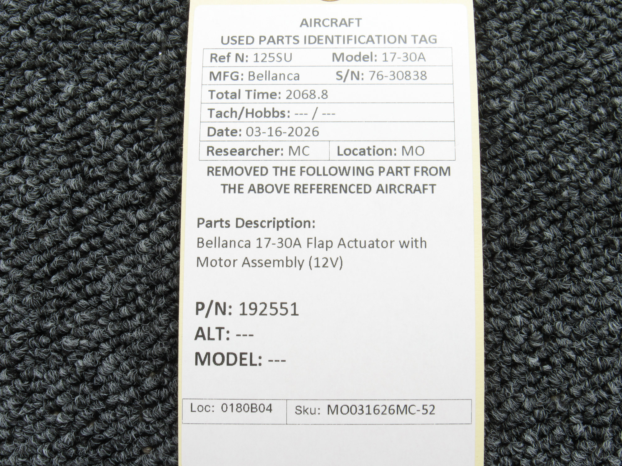 Every part is carefully inspected throughout our process and several times before it goes online. Most items are sold as-removed, just as they came off the aircraft. These parts are not functionally tested. What we do provide is clear photos, full traceability when available, pricing that reflects the as-removed condition, and a no-nonsense 90-day return window.