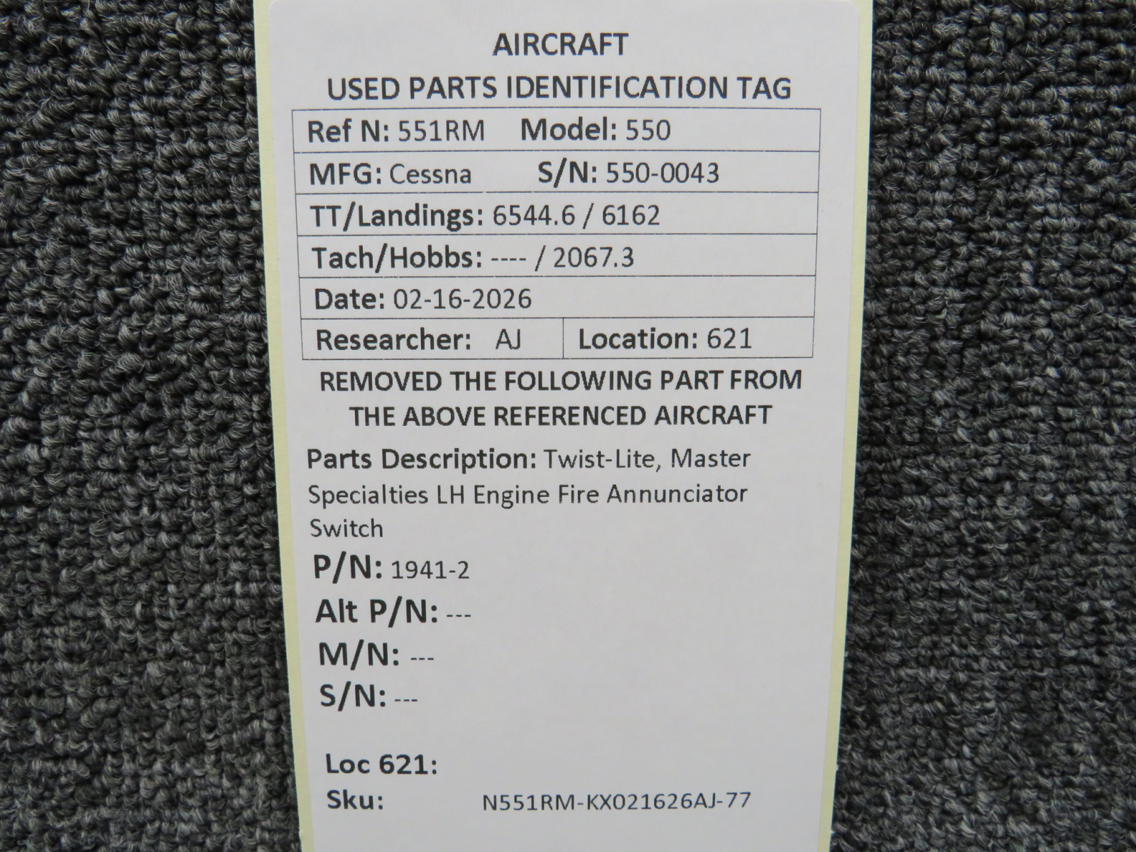 Unless specifically noted, most of our used airplane parts are sold in the condition they were removed, which means you should expect the usual signs of wear and tear.