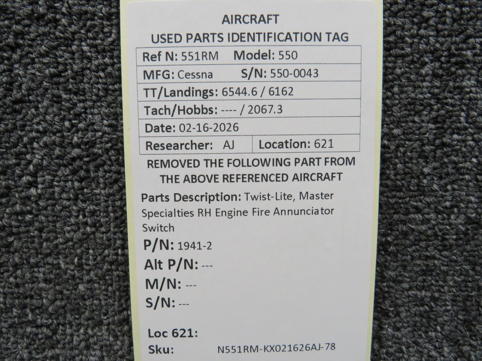 Unless specifically noted, most of our used airplane parts are sold in the condition they were removed, which means you should expect the usual signs of wear and tear.