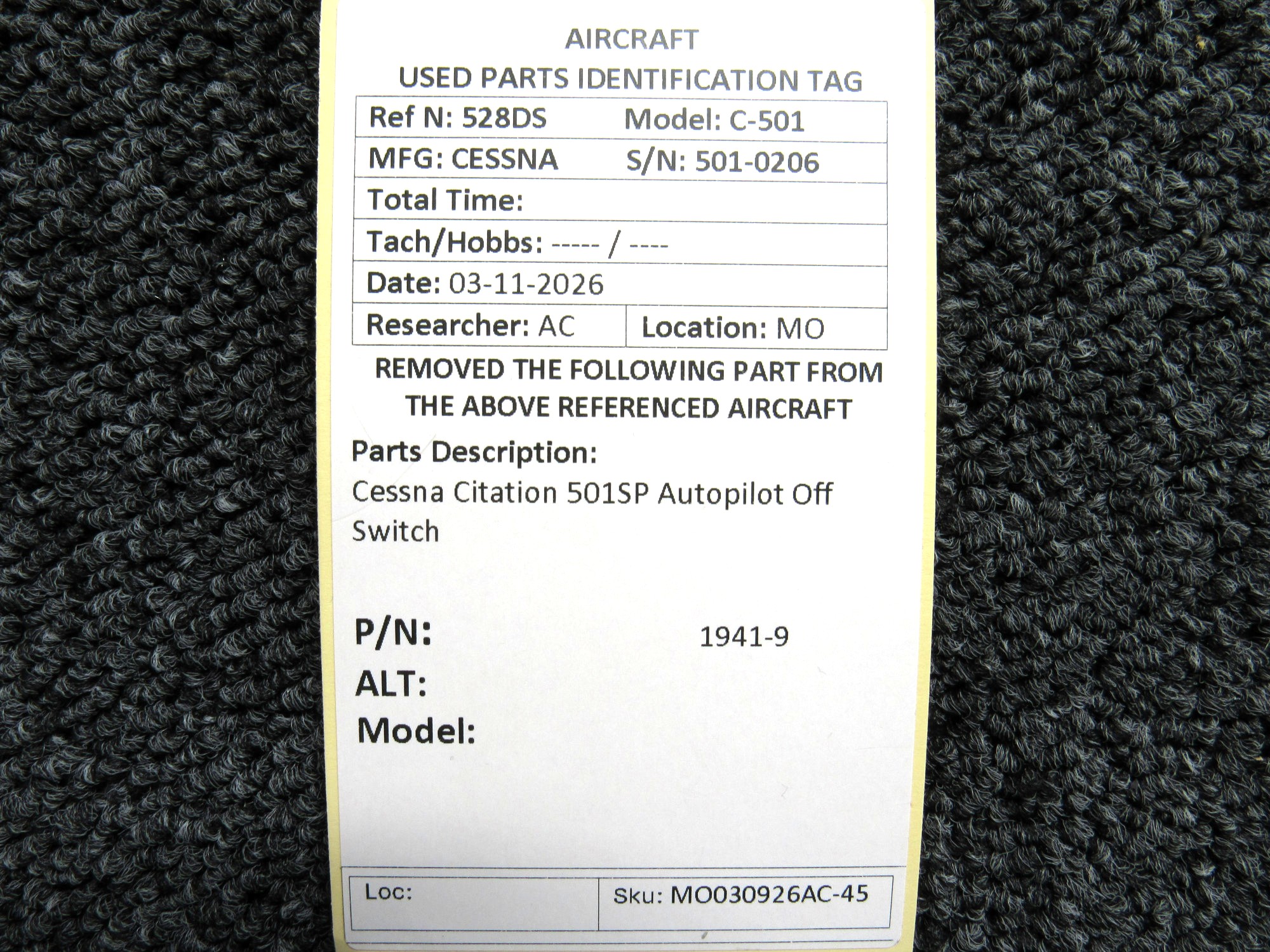 Every part is carefully inspected throughout our process and several times before it goes online. Most items are sold as-removed, just as they came off the aircraft. These parts are not functionally tested. What we do provide is clear photos, full traceability when available, pricing that reflects the as-removed condition, and a no-nonsense 90-day return window.