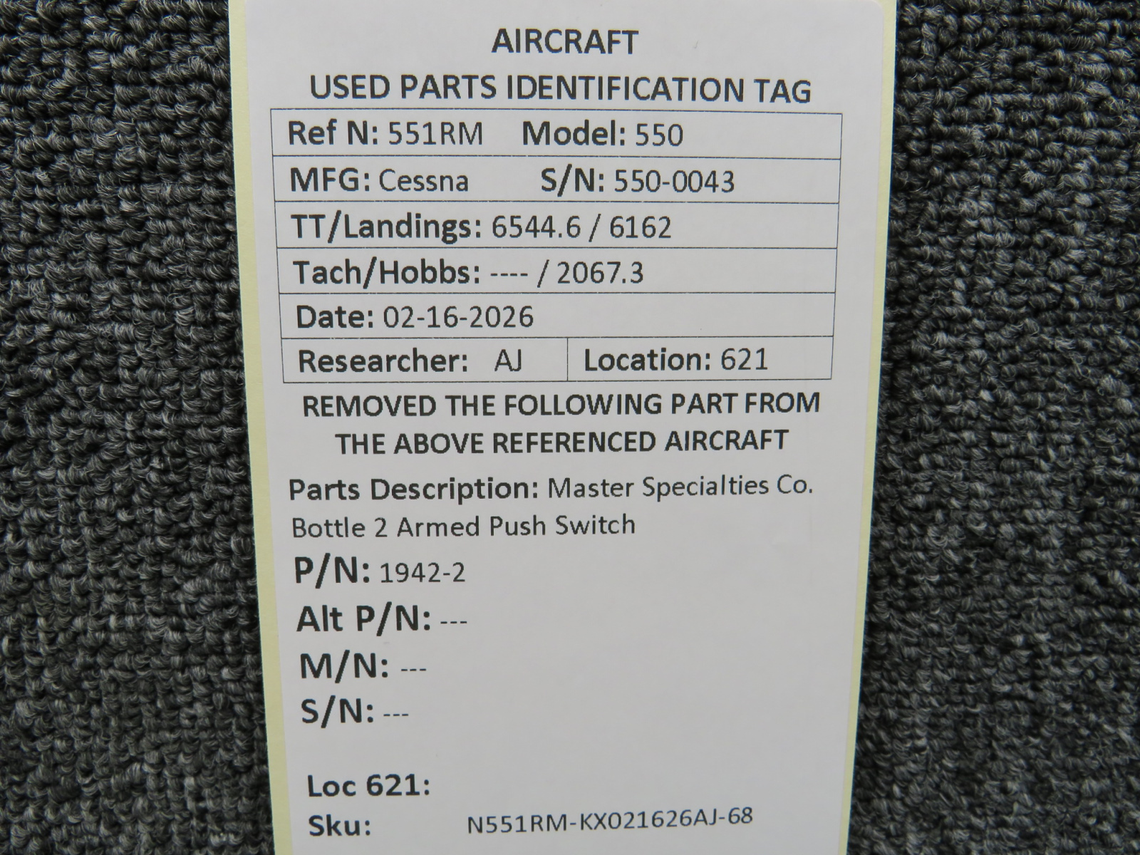 Unless specifically noted, most of our used airplane parts are sold in the condition they were removed, which means you should expect the usual signs of wear and tear.