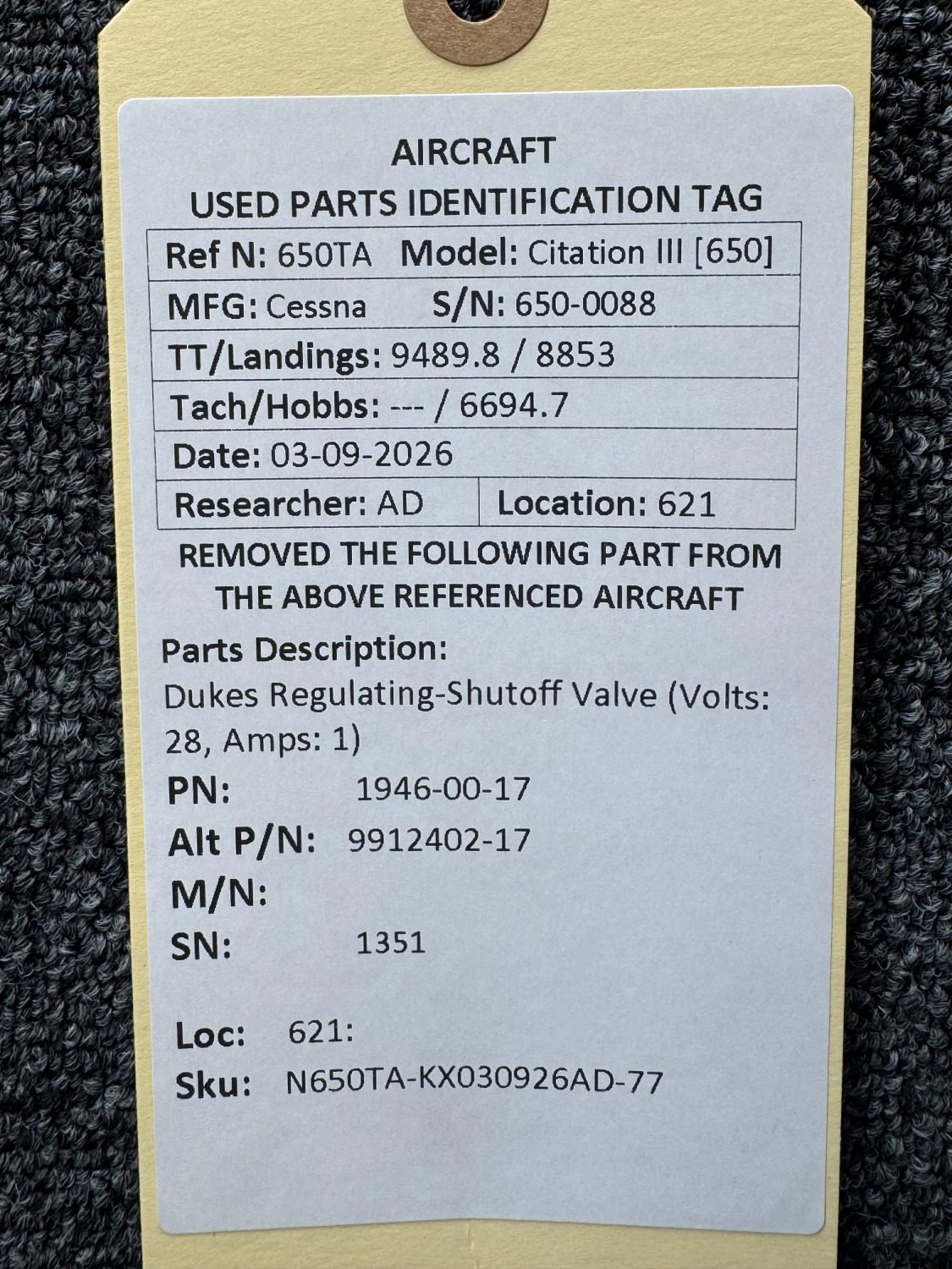 Every part is carefully inspected throughout our process and several times before it goes online. Most items are sold as-removed, just as they came off the aircraft. These parts are not functionally tested. What we do provide is clear photos, full traceability when available, pricing that reflects the as-removed condition, and a no-nonsense 90-day return window.