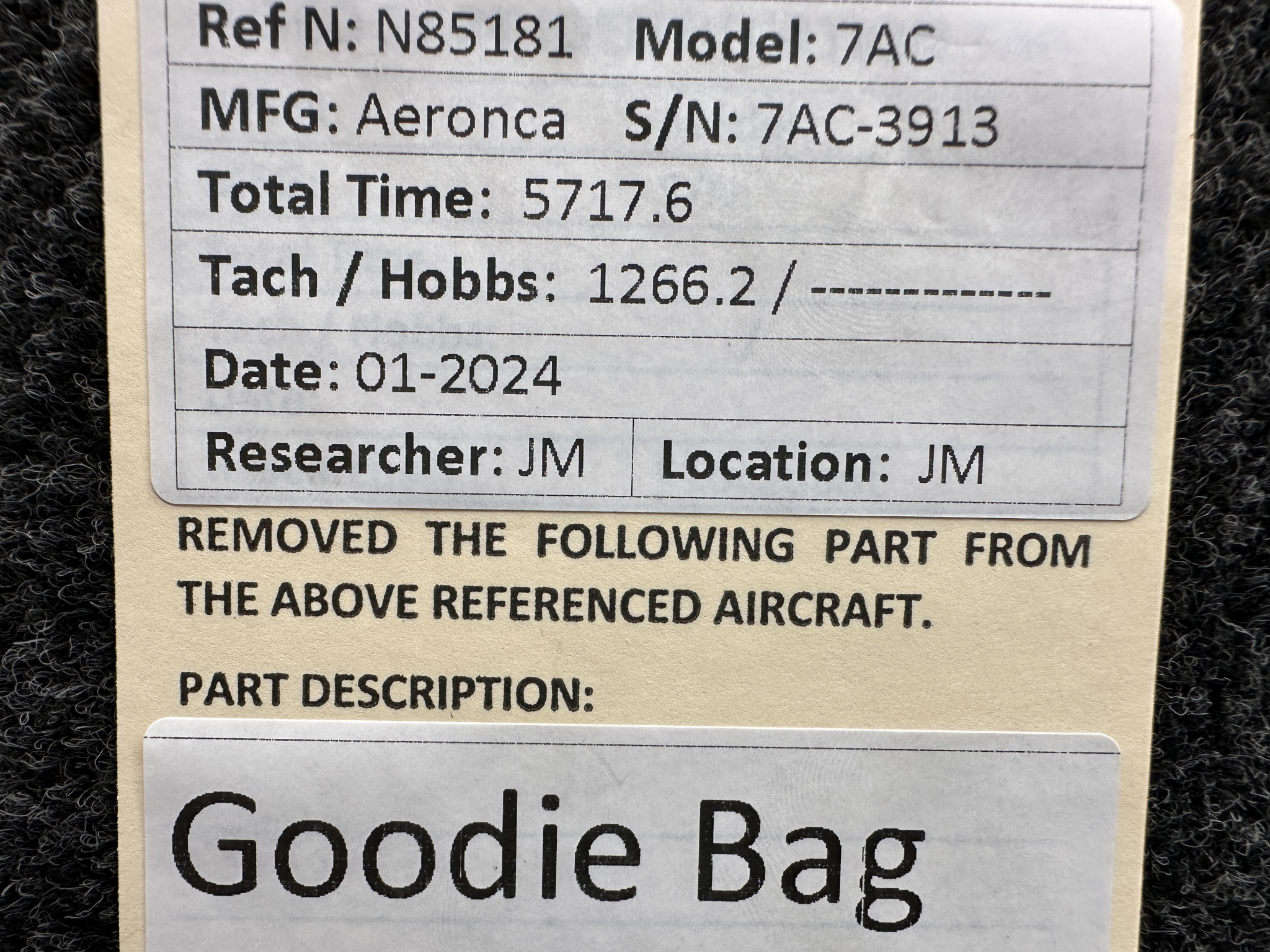 - Includes various parts for the 1946 Aeronca 7AC