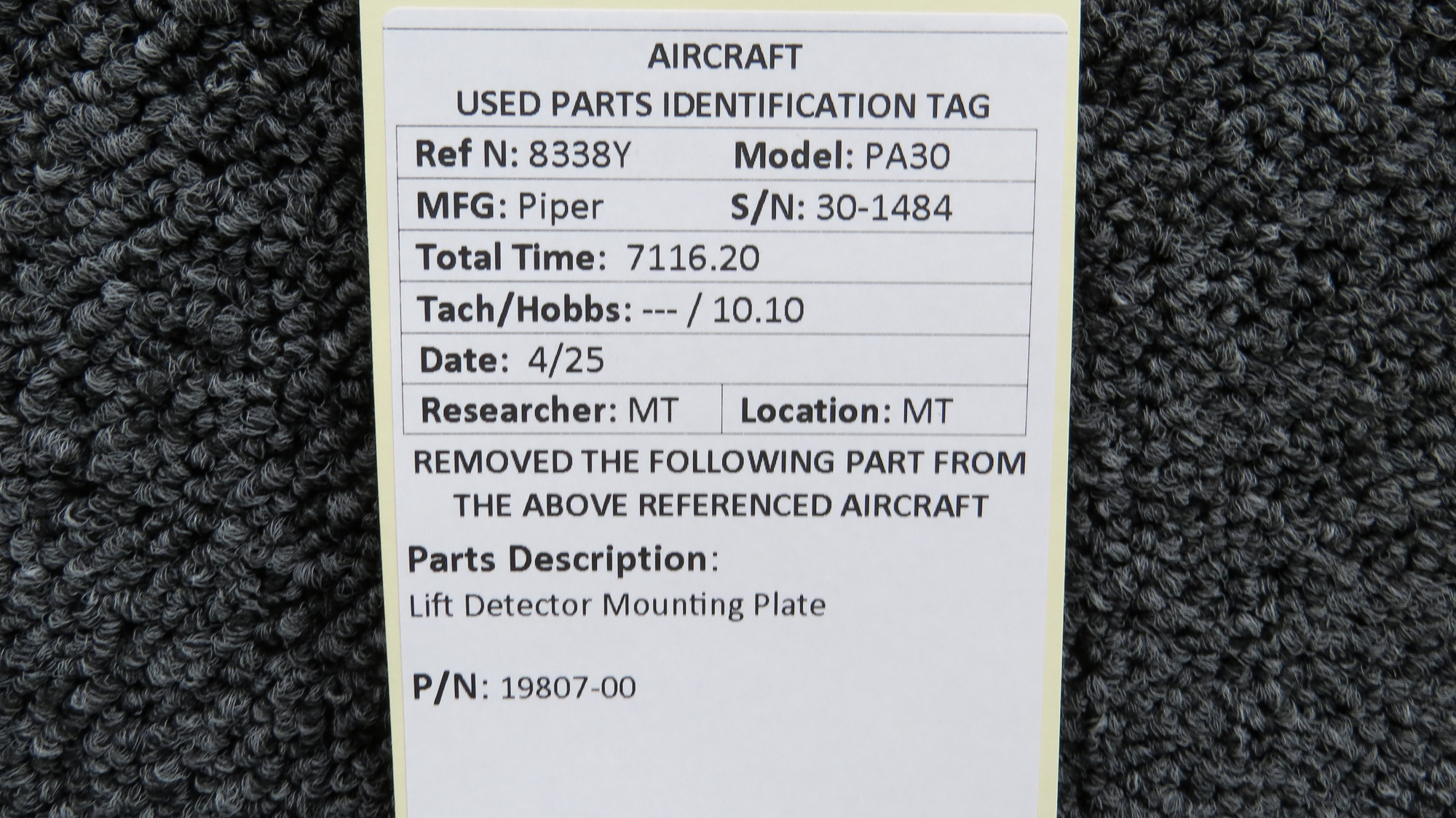 Unless specifically noted, most of our used airplane parts are sold in the condition they were removed, which means you should expect the usual signs of wear and tear.