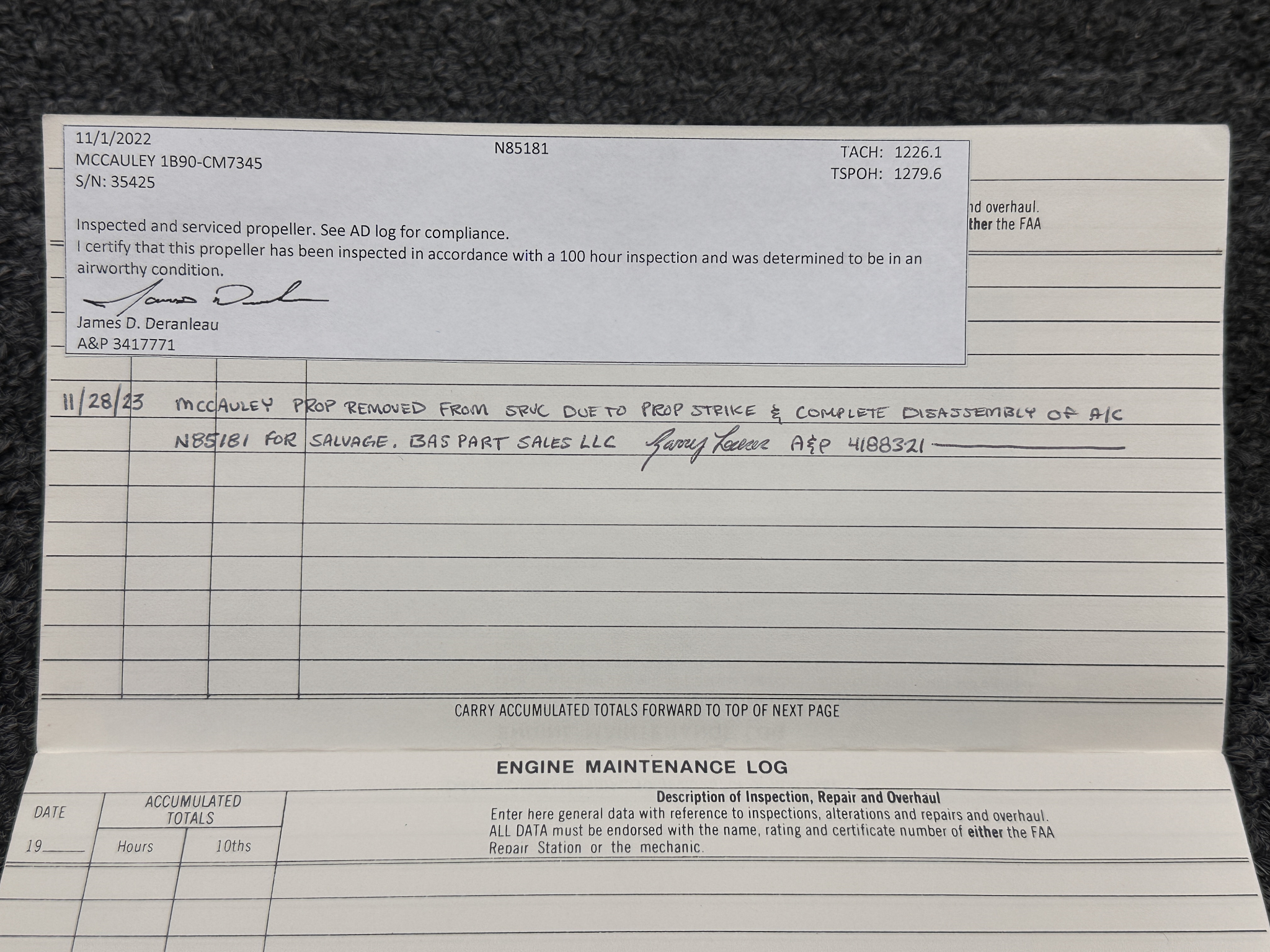 - Reconditioned By: Fix Prop Shop on 11-6-2002
