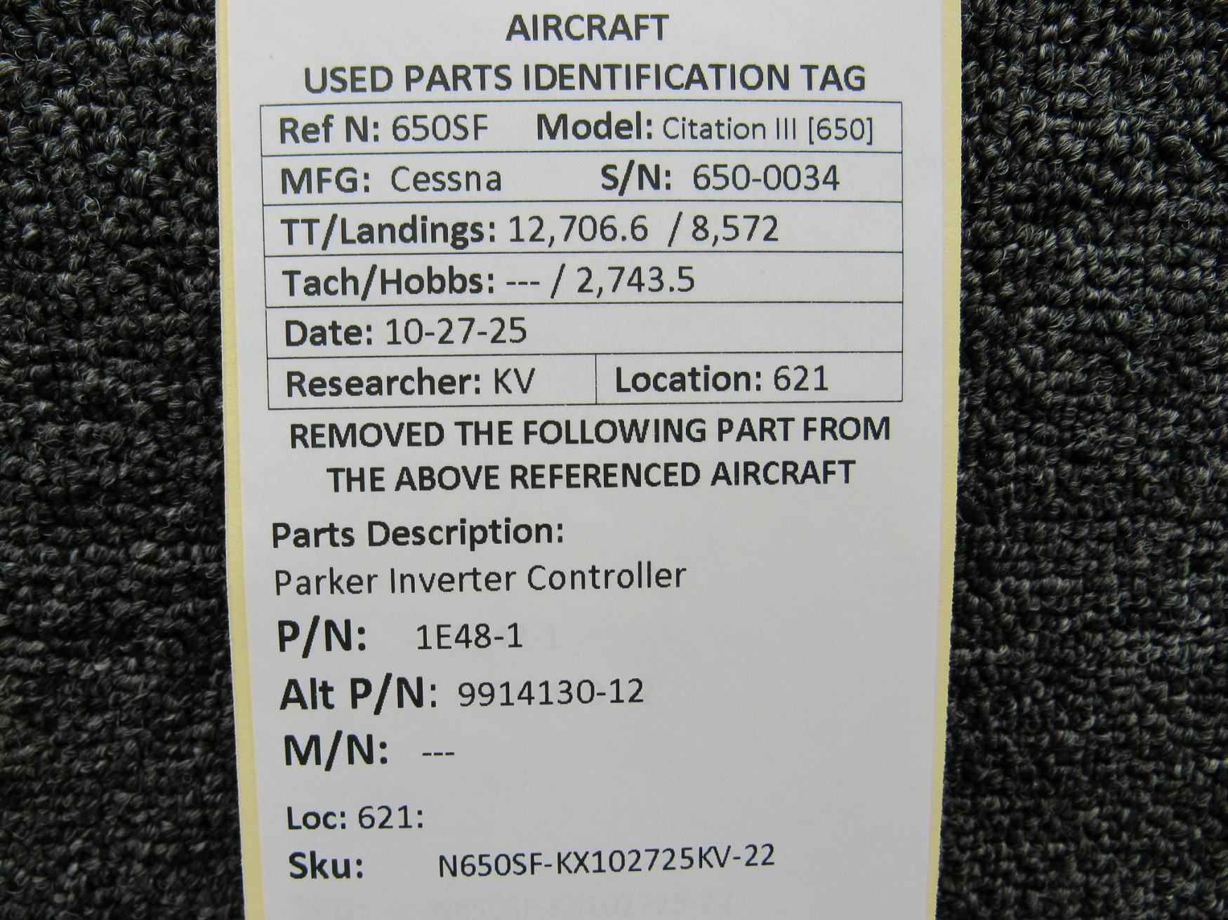 Unless specifically noted, most of our used airplane parts are sold in the condition they were removed, which means you should expect the usual signs of wear and tear.