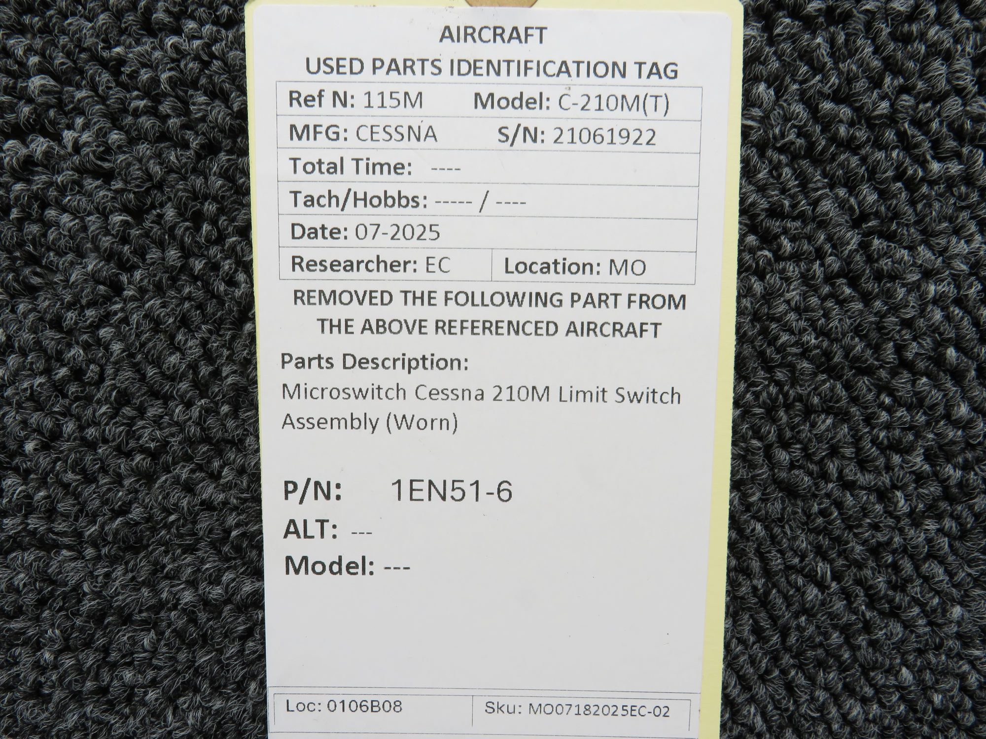 Unless specifically noted, most of our used airplane parts are sold in the condition they were removed, which means you should expect the usual signs of wear and tear.