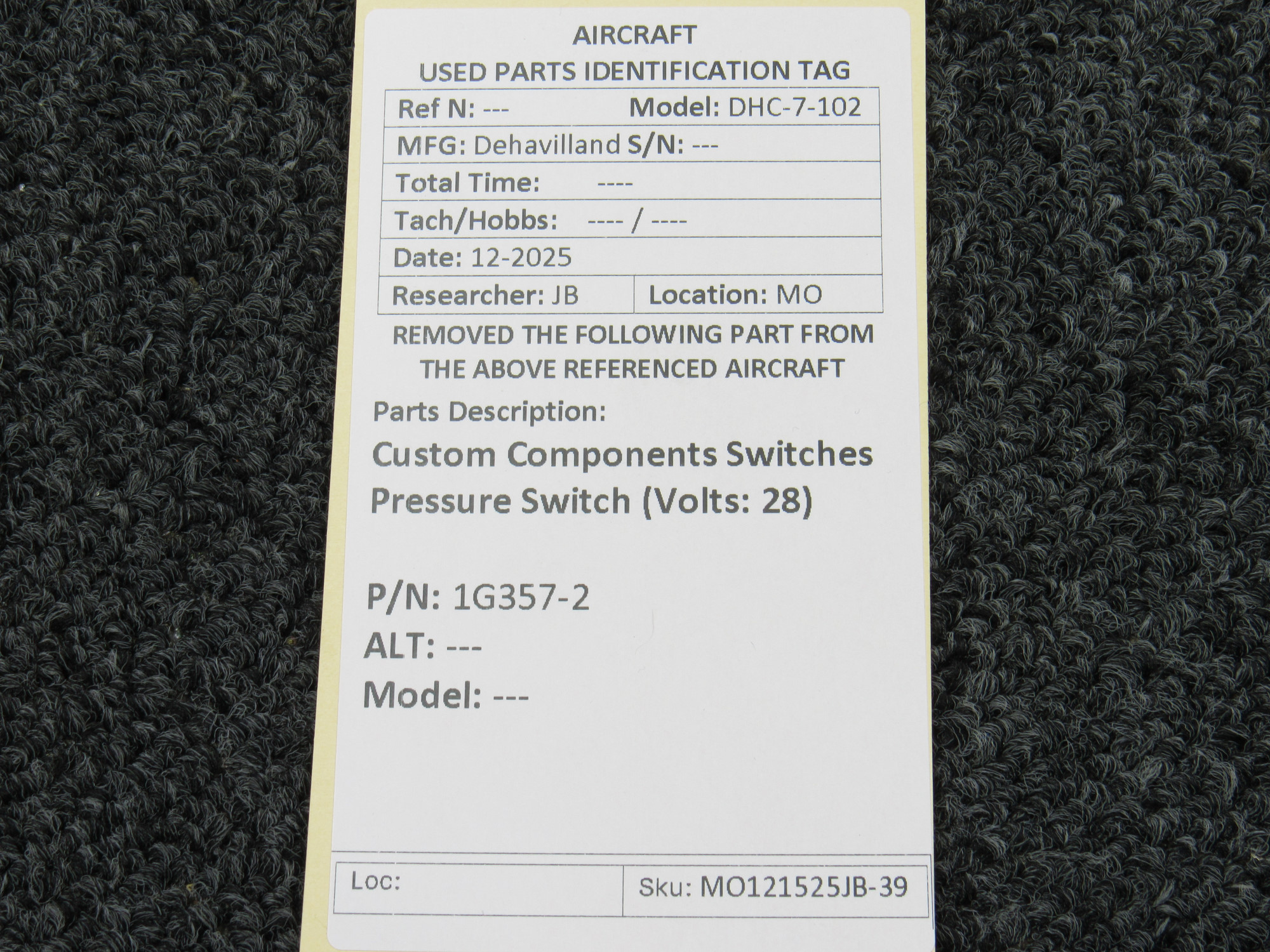 Unless specifically noted, most of our used airplane parts are sold in the condition they were removed, which means you should expect the usual signs of wear and tear.