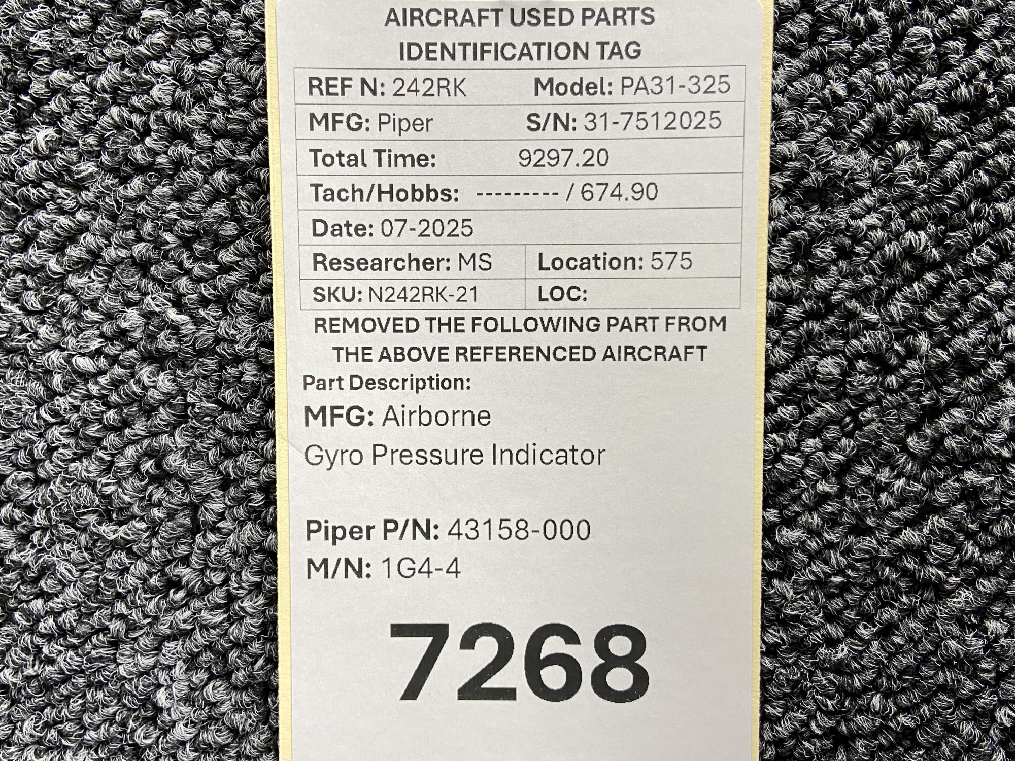 Unless specifically noted, most of our used airplane parts are sold in the condition they were removed, which means you should expect the usual signs of wear and tear.