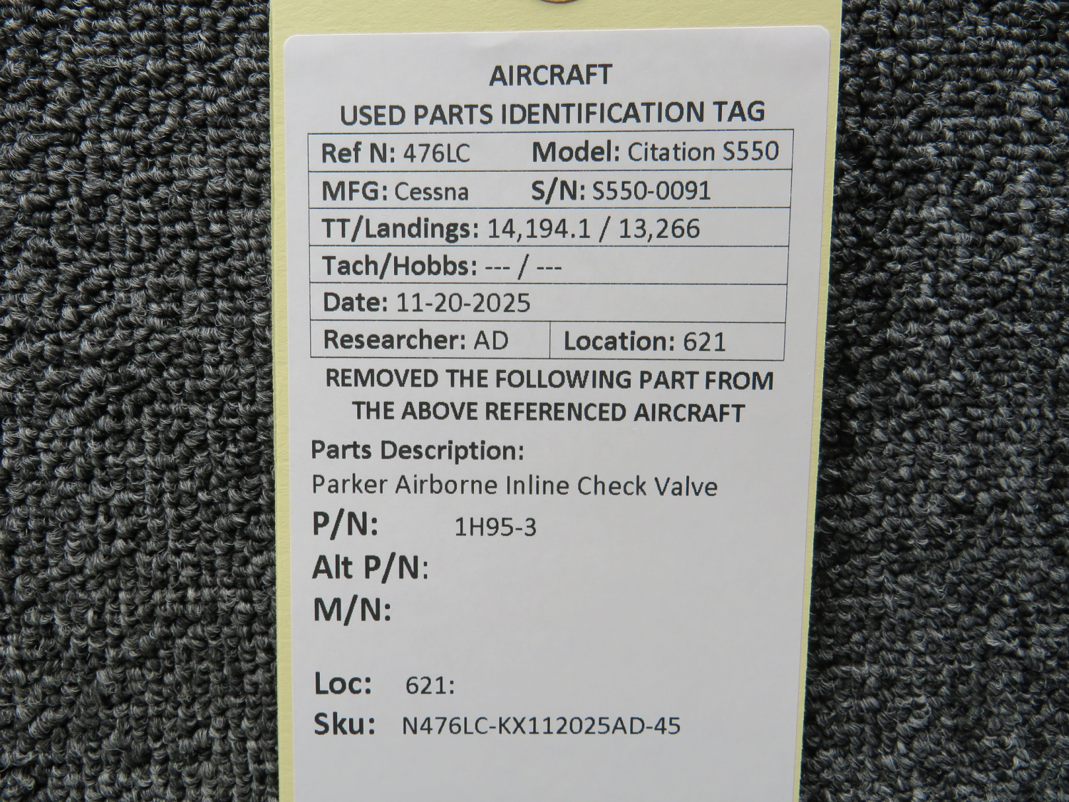 Unless specifically noted, most of our used airplane parts are sold in the condition they were removed, which means you should expect the usual signs of wear and tear.