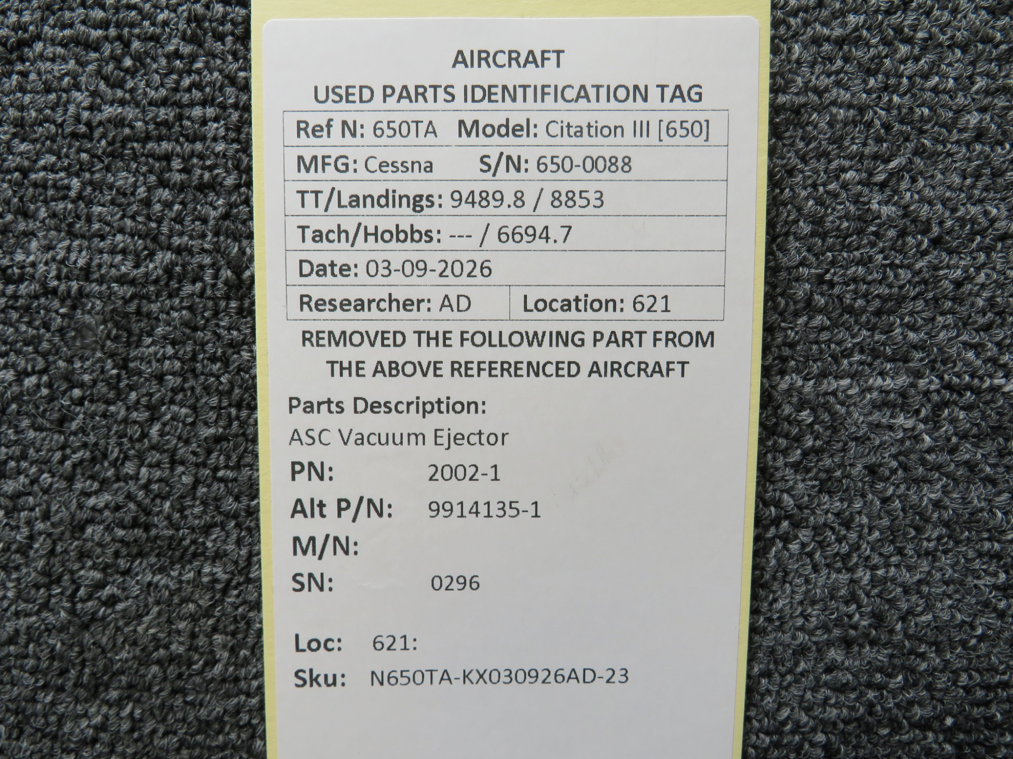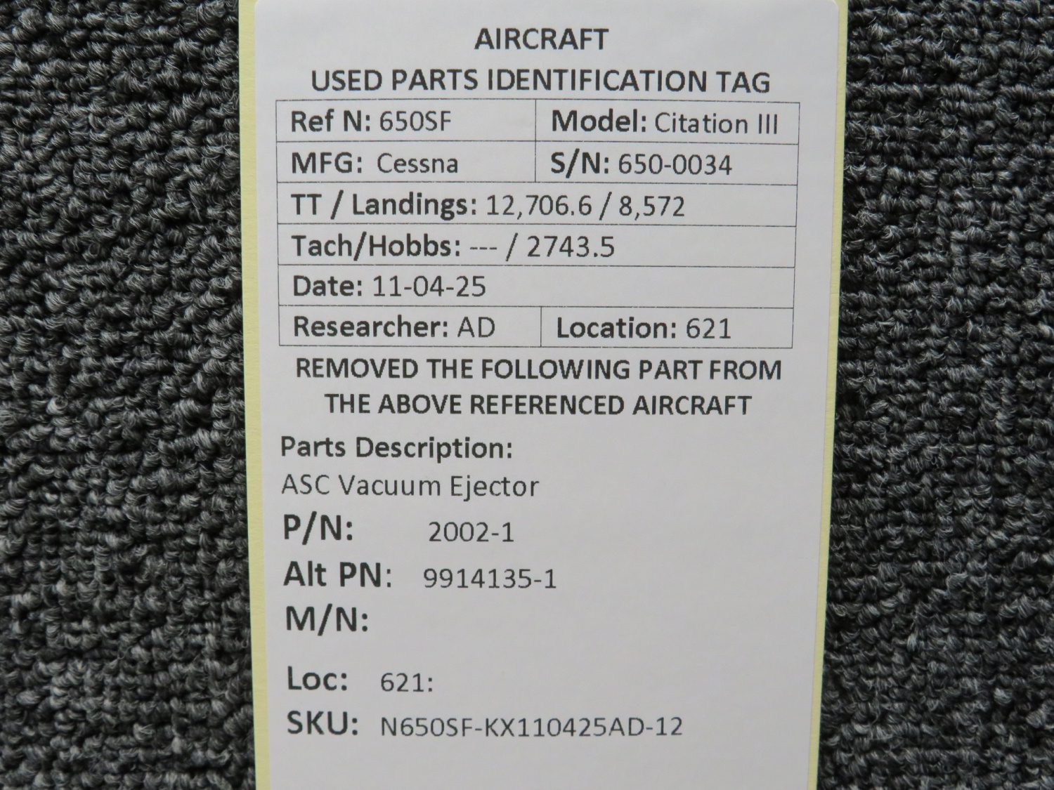 Every part is carefully inspected throughout our process and several times before it goes online. Most items are sold as-removed, just as they came off the aircraft. These parts are not functionally tested. What we do provide is clear photos, full traceability when available, pricing that reflects the as-removed condition, and a no-nonsense 90-day return window.
